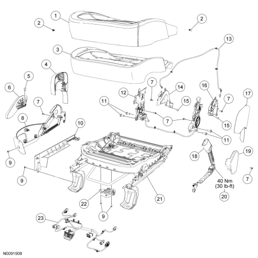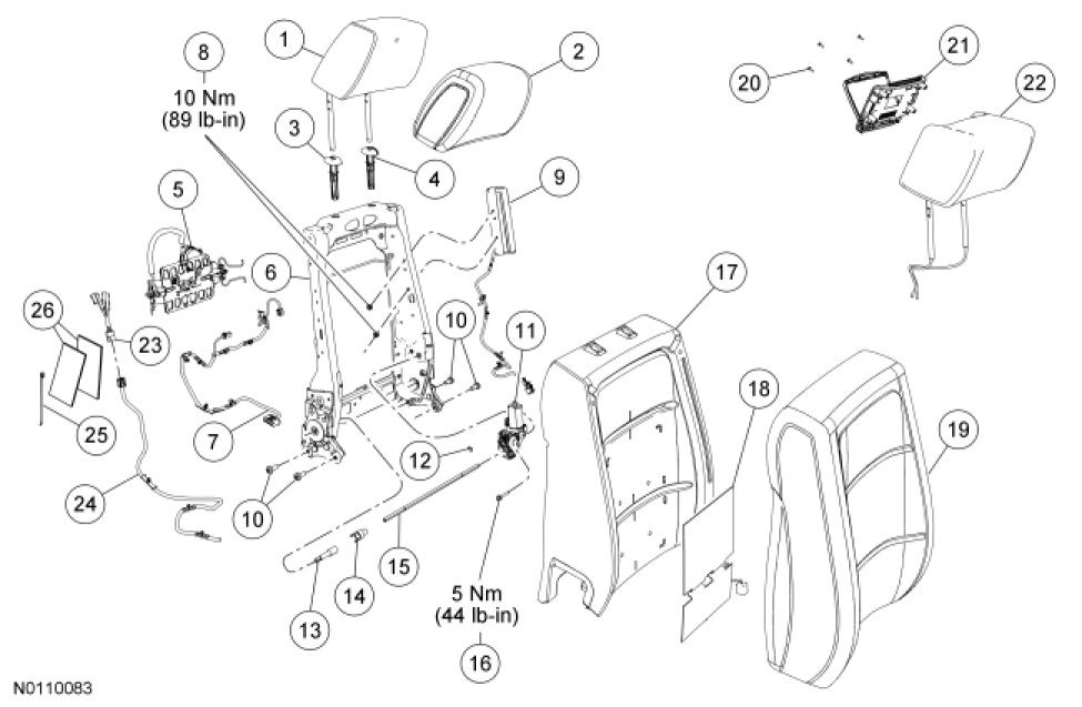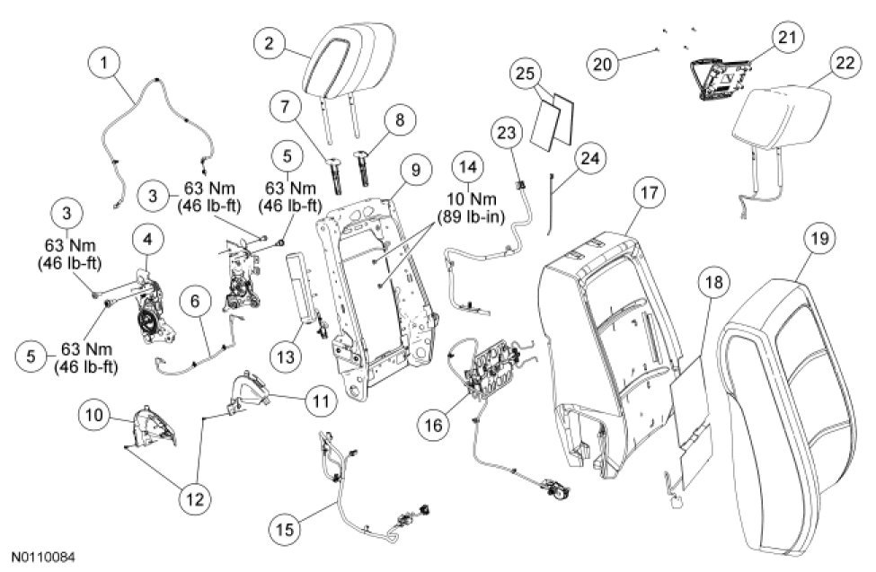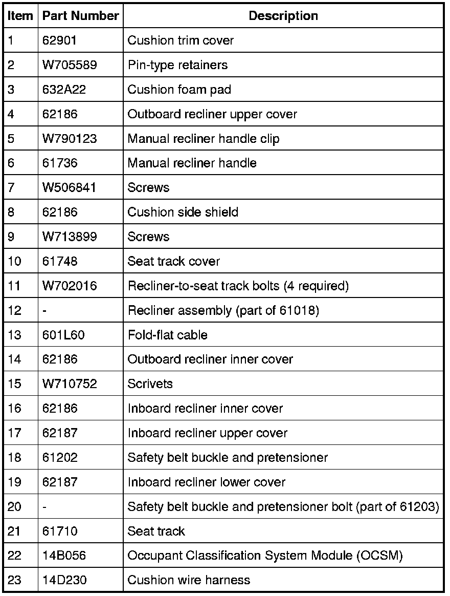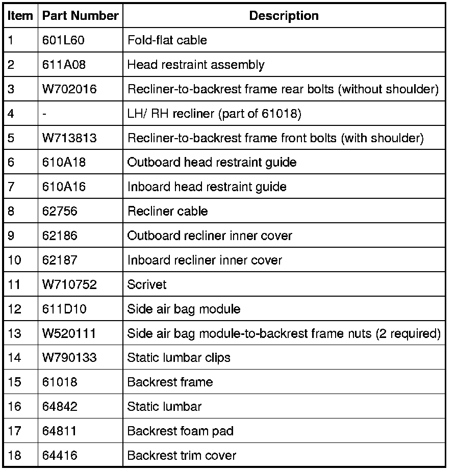 NOTE: Refer to Seat Backrest - Front, Without Fold Flat Seat Backrest - Front, Without Fold Flat for recliner-to-seat track bolt tightening sequence and torque specification.