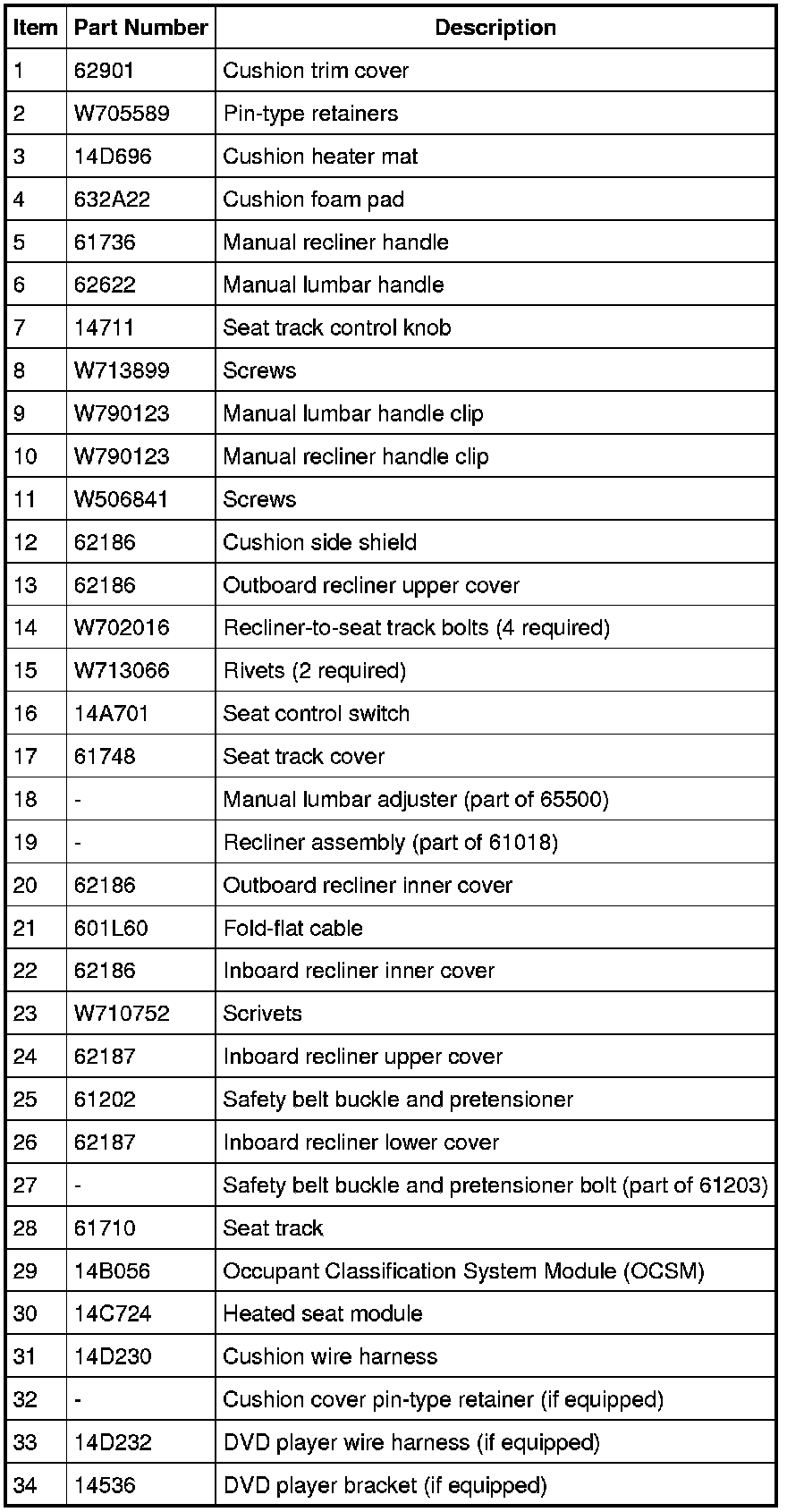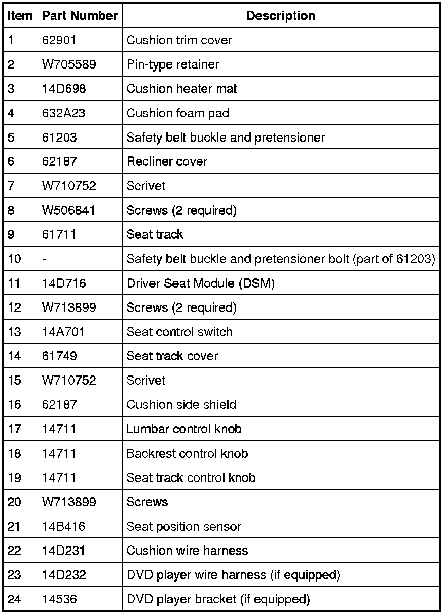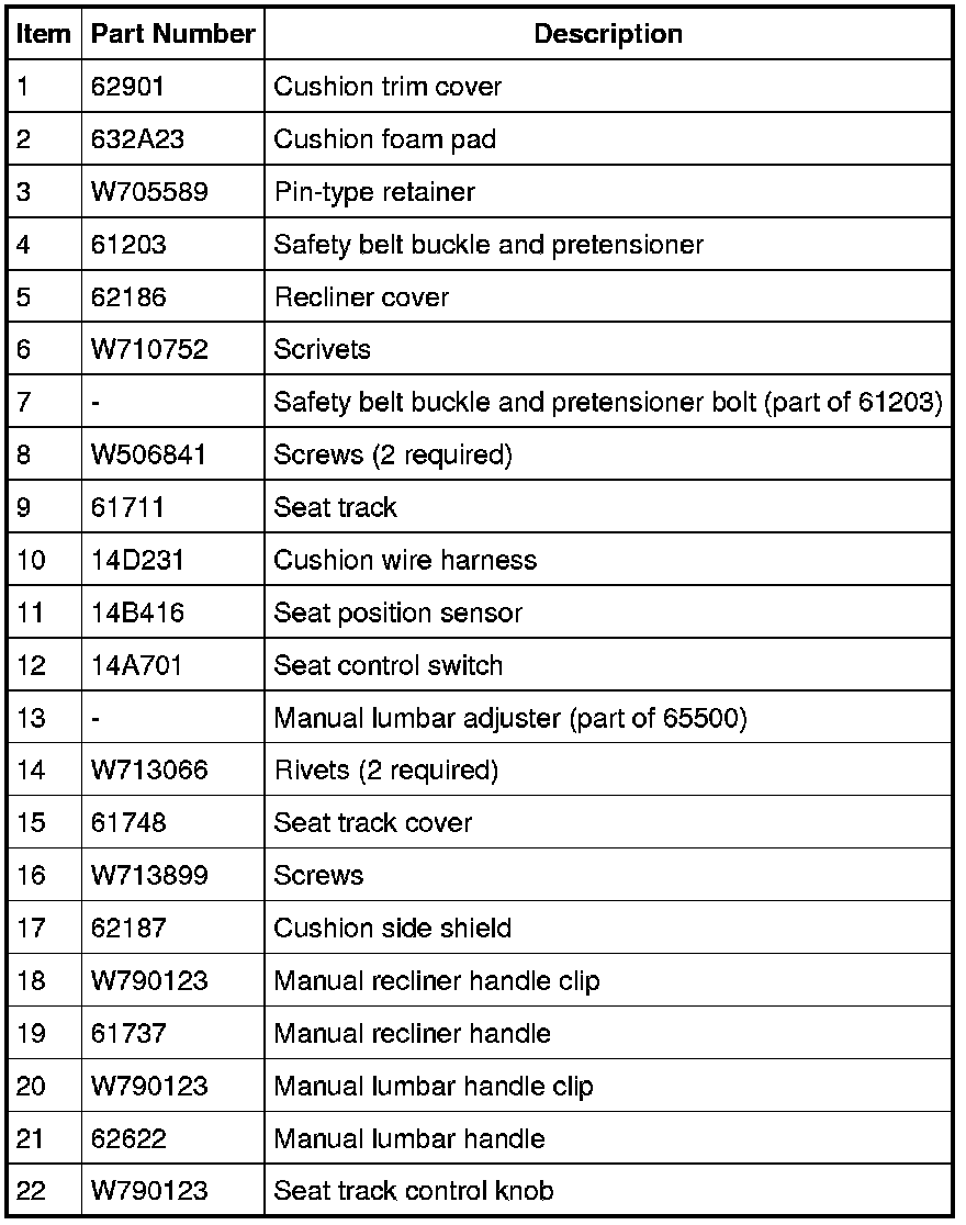 Seat - Exploded View, Front
