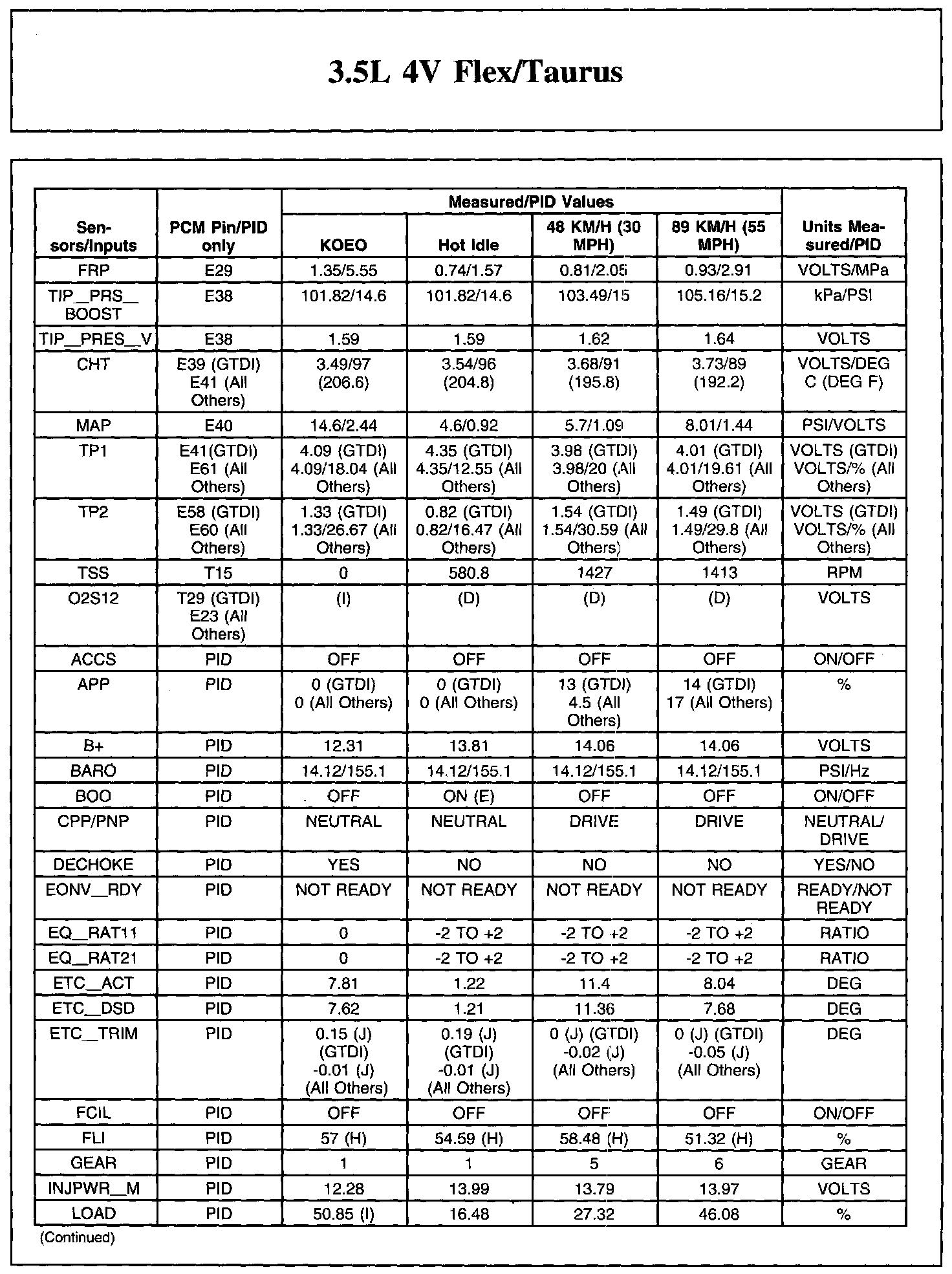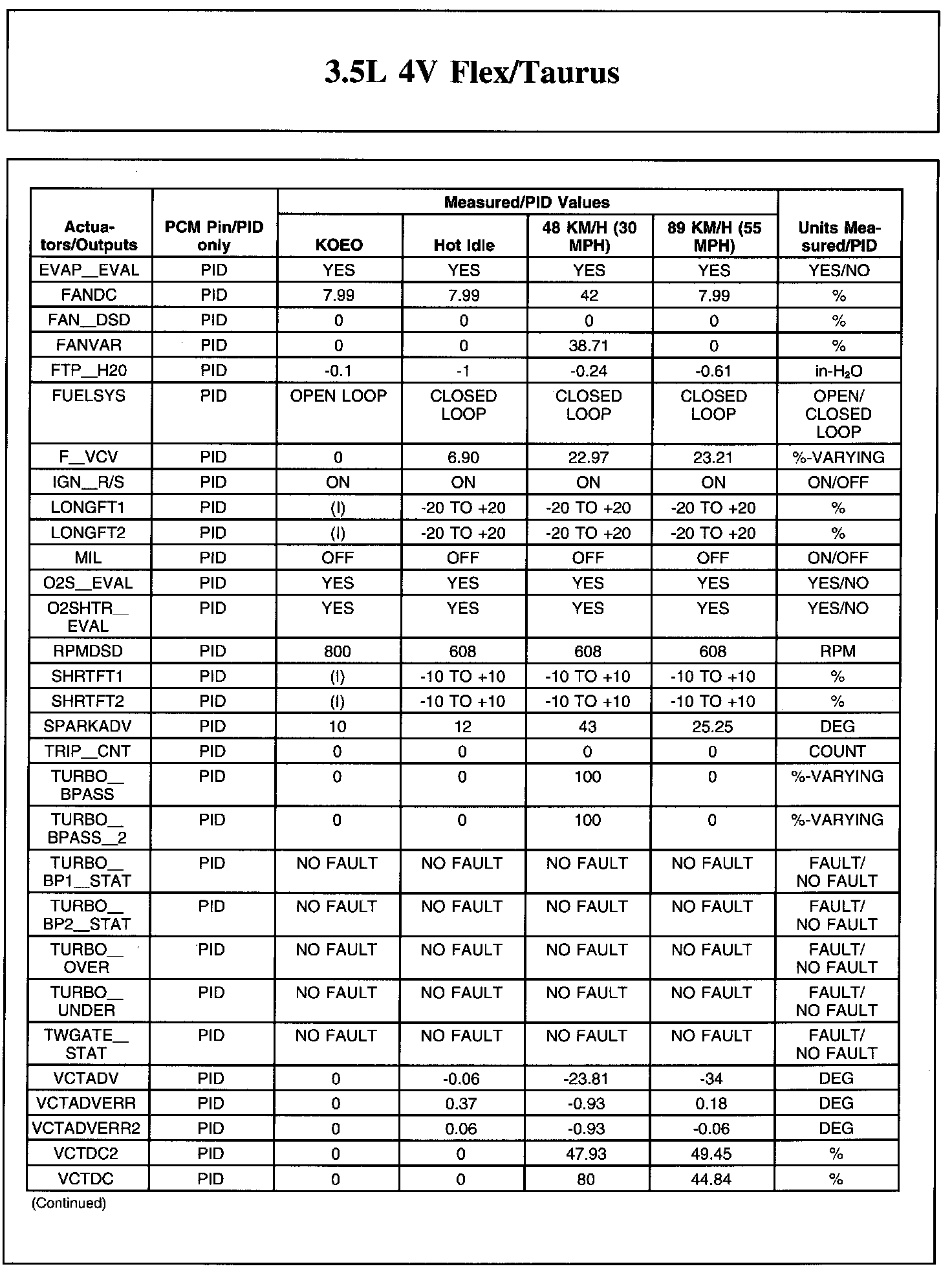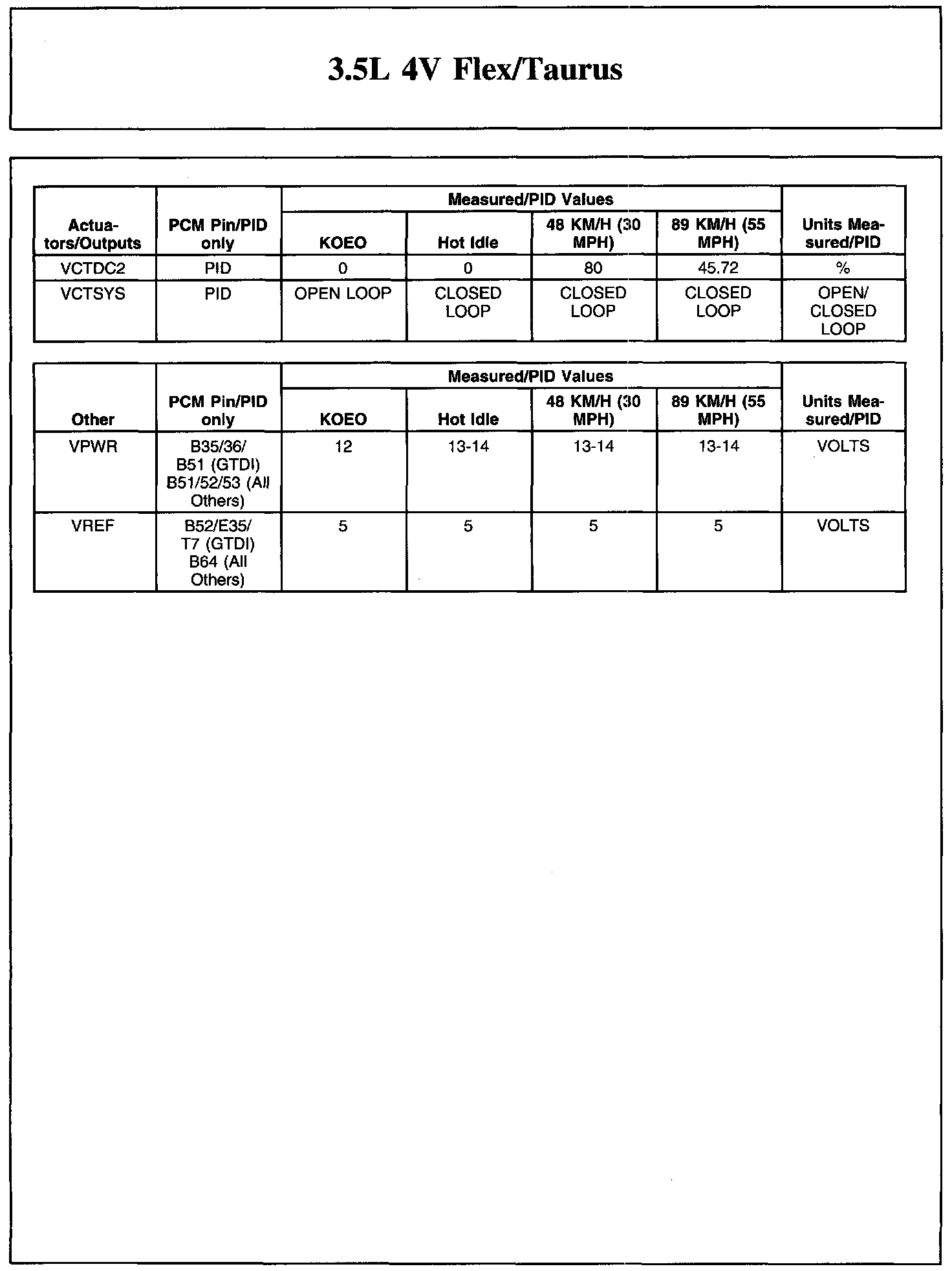 Home >> Ford >> 2011 >> Flex FWD V6-3.5L >> Repair and Diagnosis >> Powertrain Management >> Computers and Control Systems >> Testing and Inspection >> Scan Tool Testing and Procedures >> Typical Diagnostic Reference Values