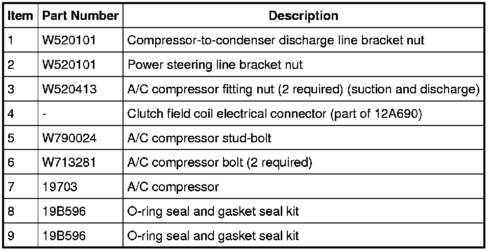 NOTICE: If installing a new Air Conditioning (A/C) compressor due to an internal failure of the old unit, the following procedures must be carried out to remove contamination from the A/C system. Failure to remove contamination from the A/C system, if present, will result in poor A/C system performance and/or damage to the new A/C compressor and other components.