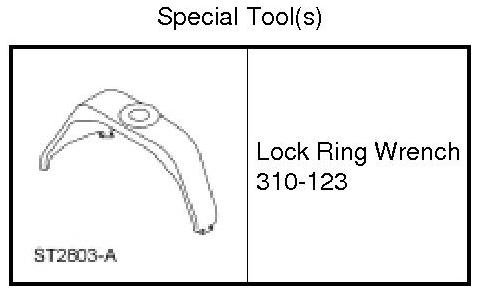 3. NOTICE: Carefully install the lock ring wrench to avoid damaging the Fuel Pump (FP) module when removing the lock ring