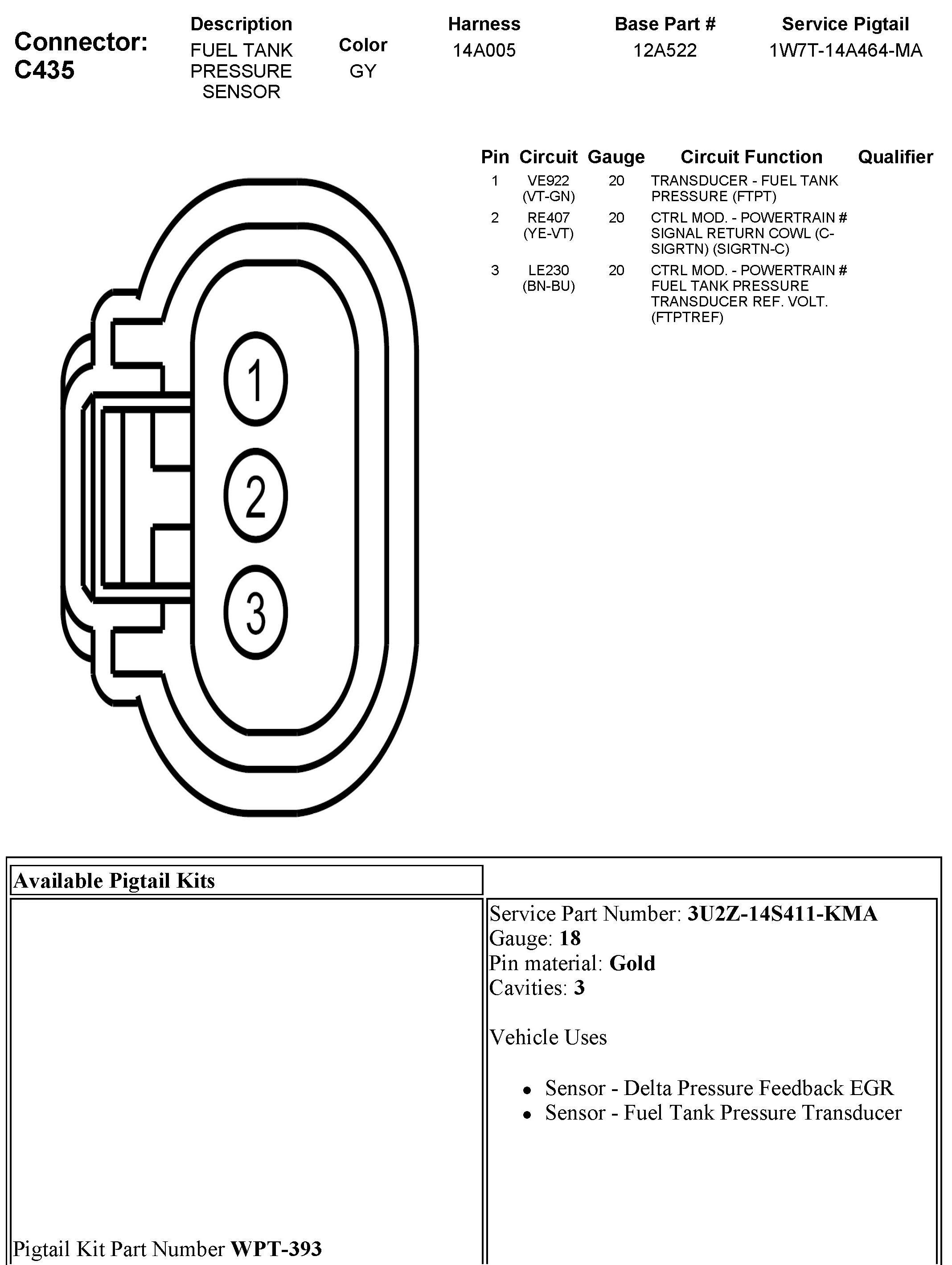 Fuel Tank Pressure Sensor: Diagrams