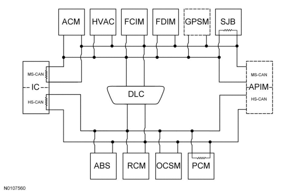 The IC is the gateway module, translating HS-CAN to MS-CAN and vice versa. This information allows a message to be distributed throughout both networks. The IC is the only module on this vehicle that has this ability.