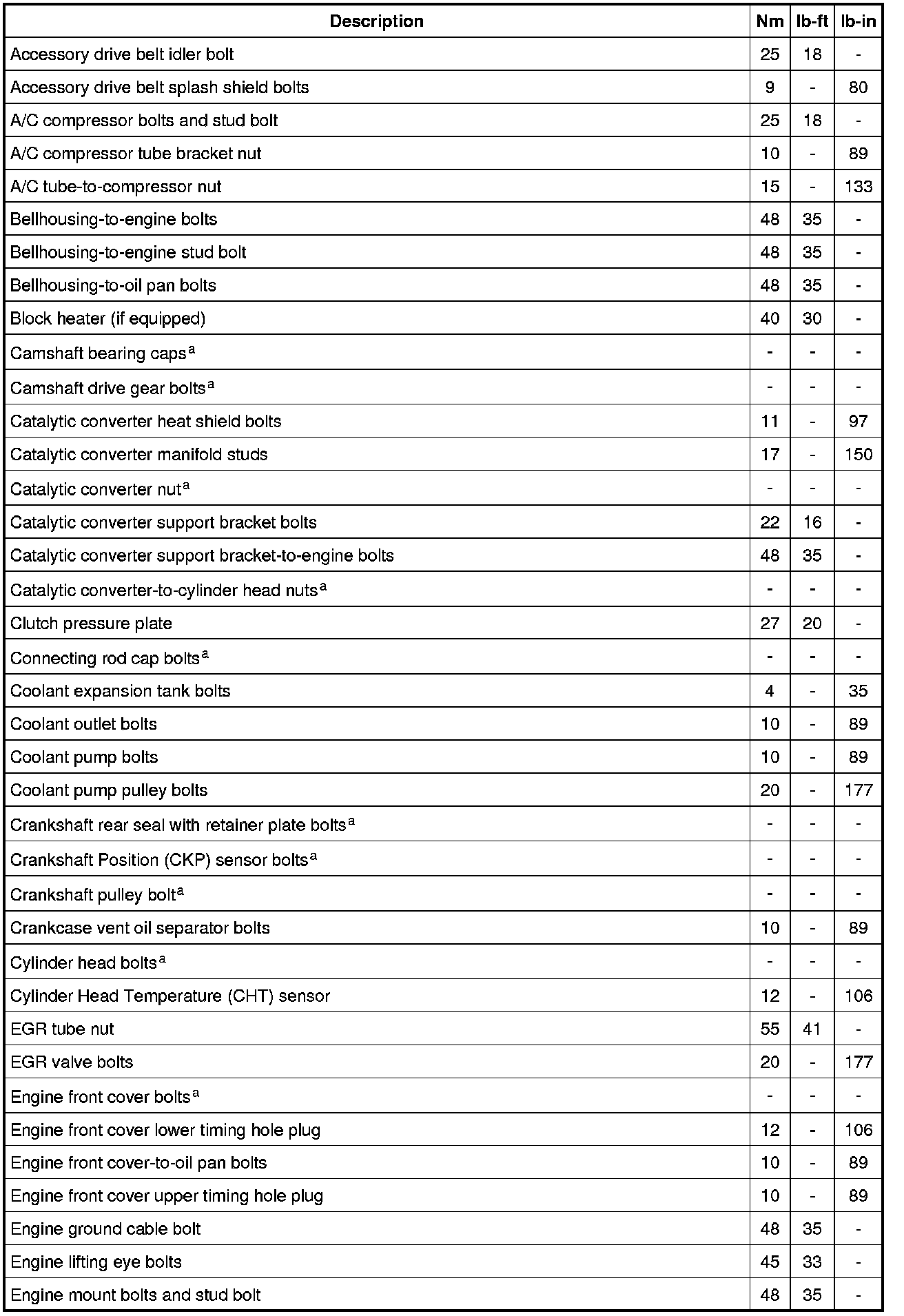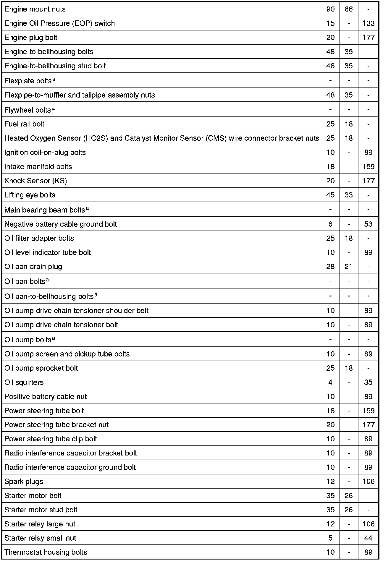 Torque Specifications