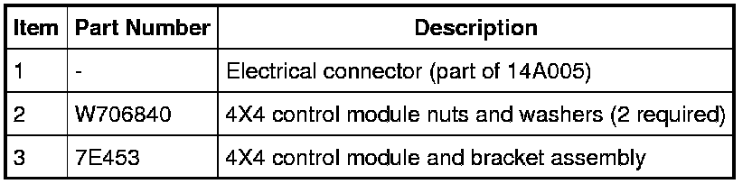 1. From below the LH side instrument panel, disconnect the 4X4 control module harness connector.