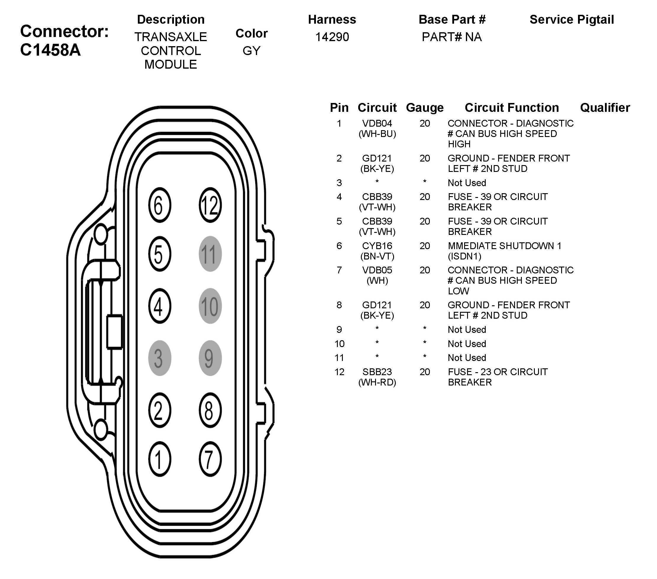 C1458A Transaxle Control Module