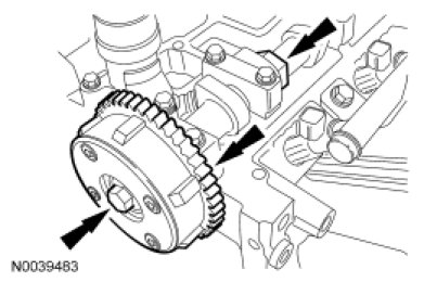 Install the camshaft sprockets and the bolts. Do not tighten the bolts at this time.