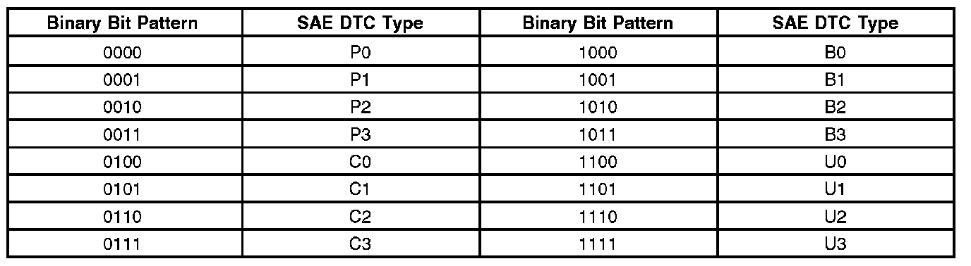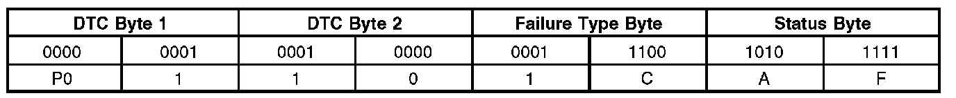 A list of failure type bytes is defined by SAE J2012 but is not described here because the PCM does not use the failure type byte.