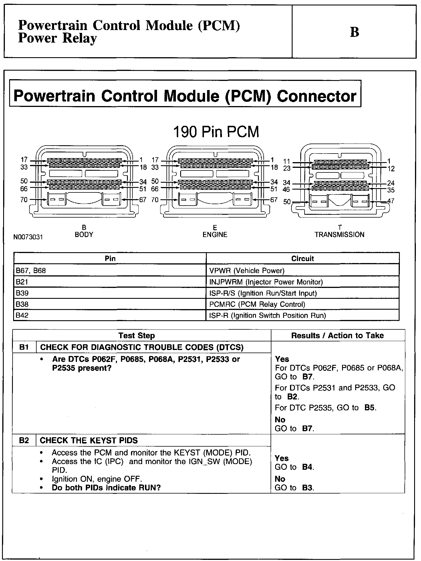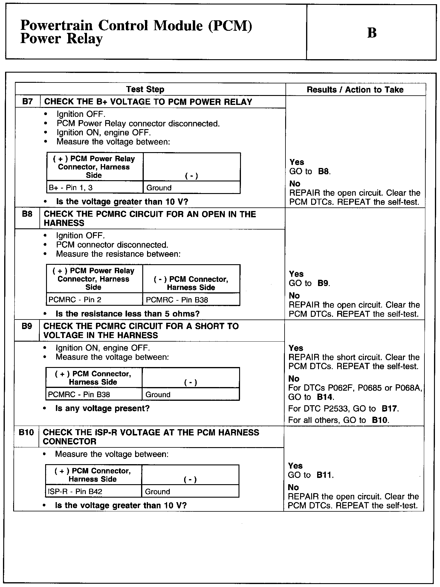 Test B: Powertrain Control Module (PCM) Power Relay