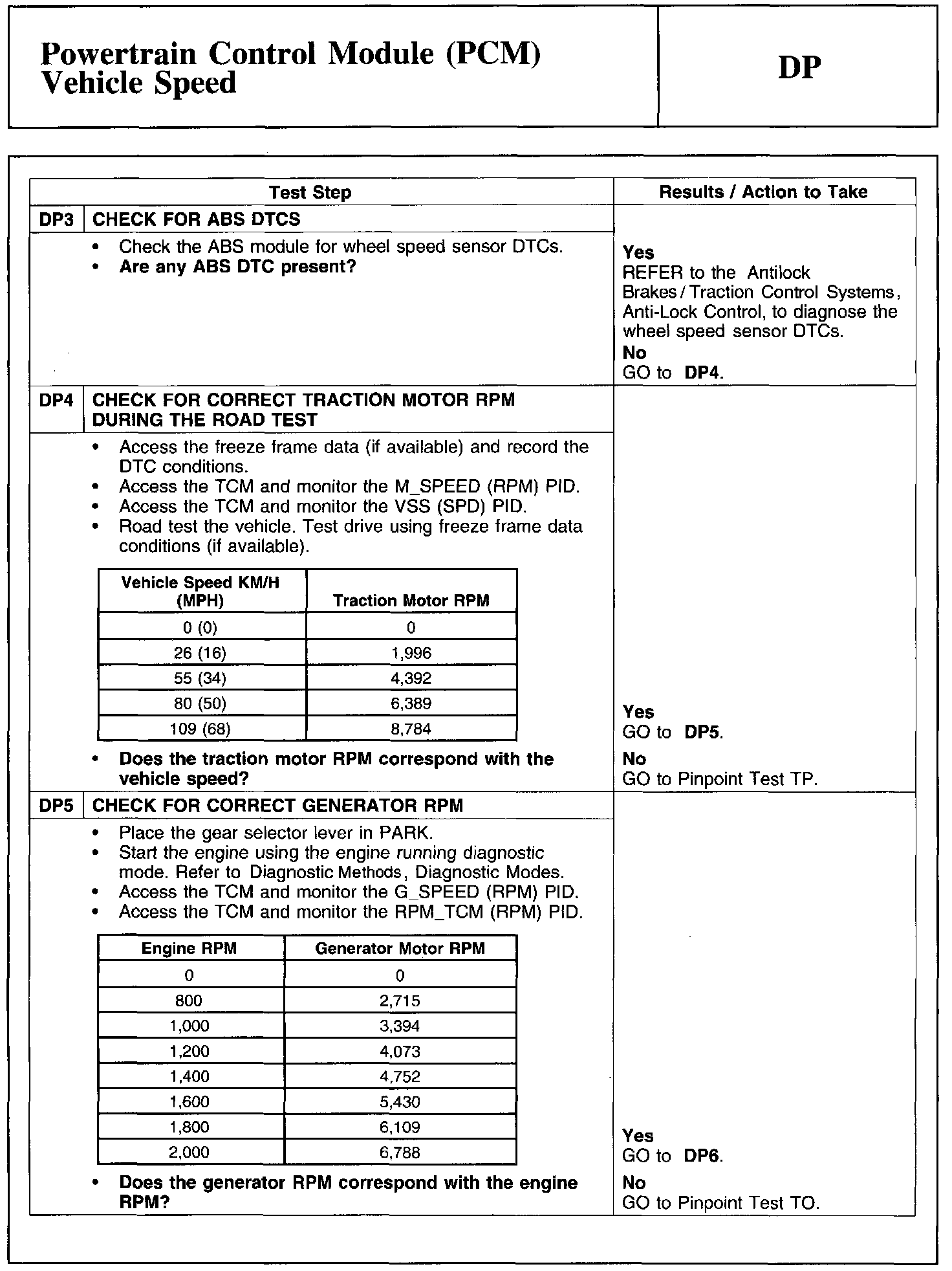 Test DP: Powertrain Control Module (PCM) Vehicle Speed