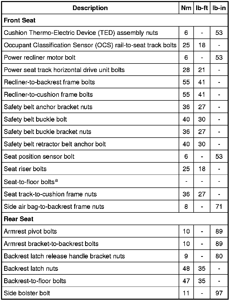 Seats: Specifications