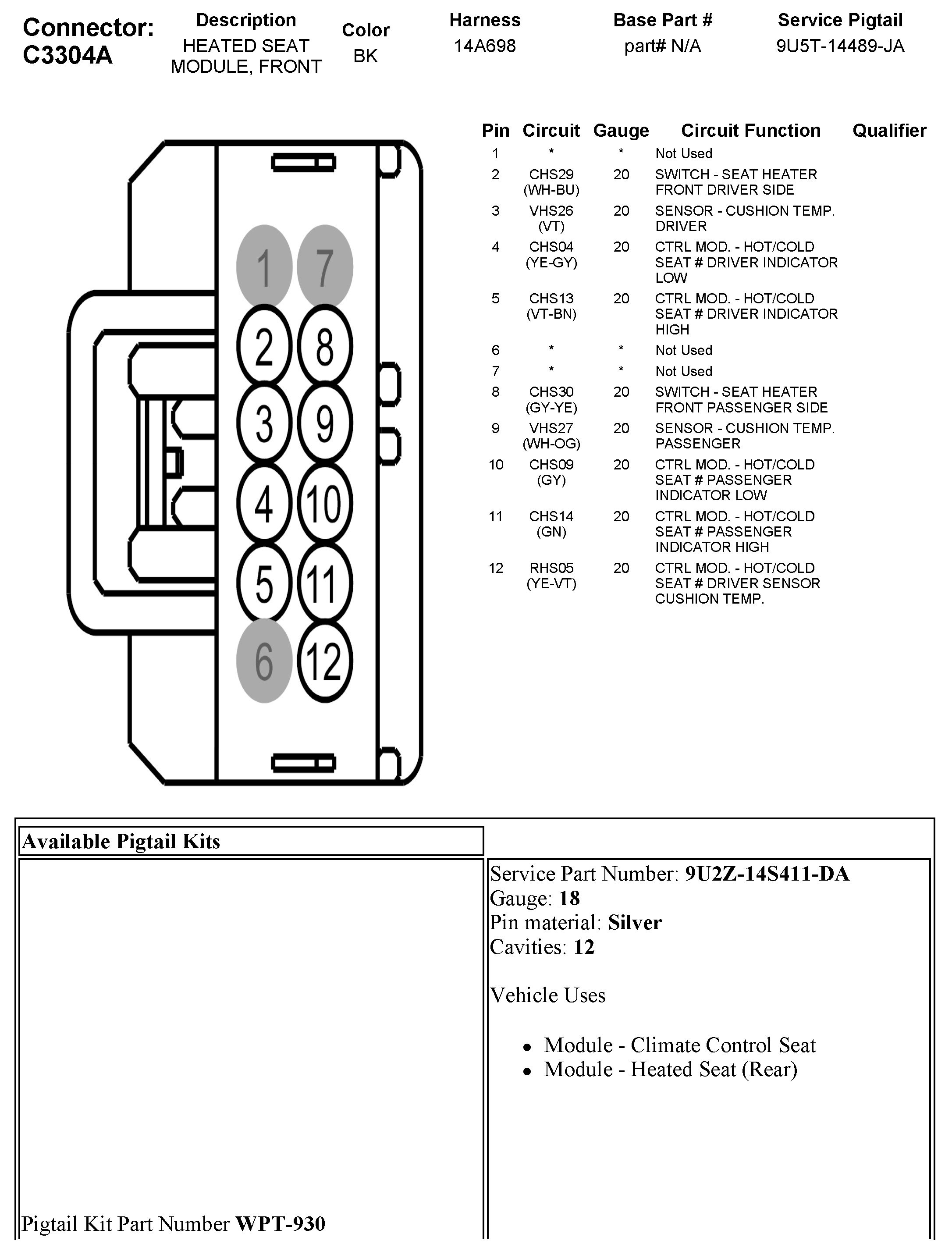 C3304A Heated Seat Module, Front