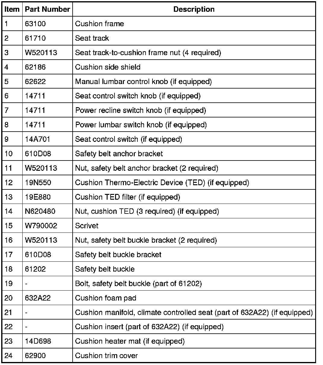 Seat - Exploded View, Front