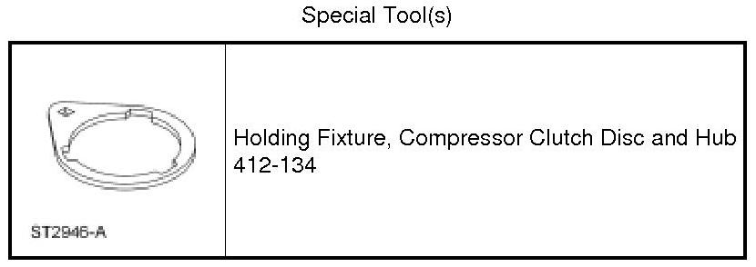 1. Hold the A/C clutch disc and hub with the Compressor Clutch Disc and Hub Holding Fixture.