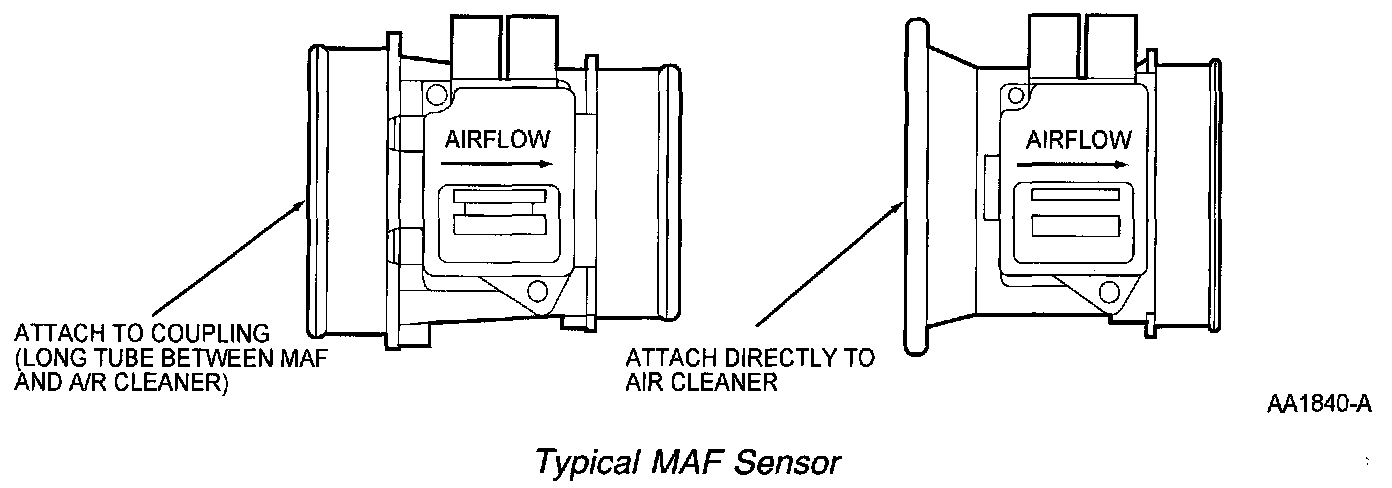 The MAF sensor is located between the air cleaner and the throttle body or inside the air cleaner assembly. Most MAF sensors have integrated bypass technology with an integrated IAT sensor. The hot wire electronic sensing element is replaced as an assembly. Replacing only the element may change the airflow calibration.