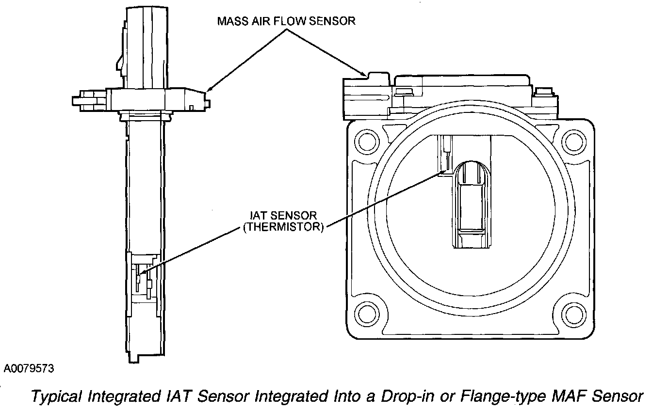 Currently there are 2 types of IAT sensors used, a stand alone and an integrated type. Both types function the same, however the integrated type is incorporated into the mass airflow (MAF) sensor instead of being a stand alone sensor.