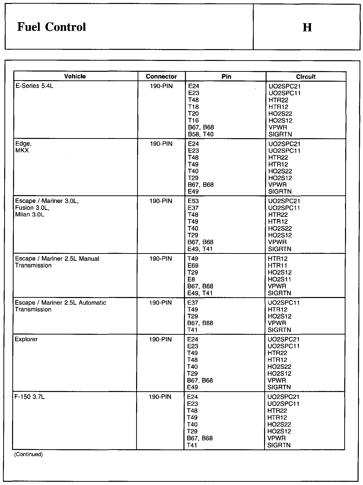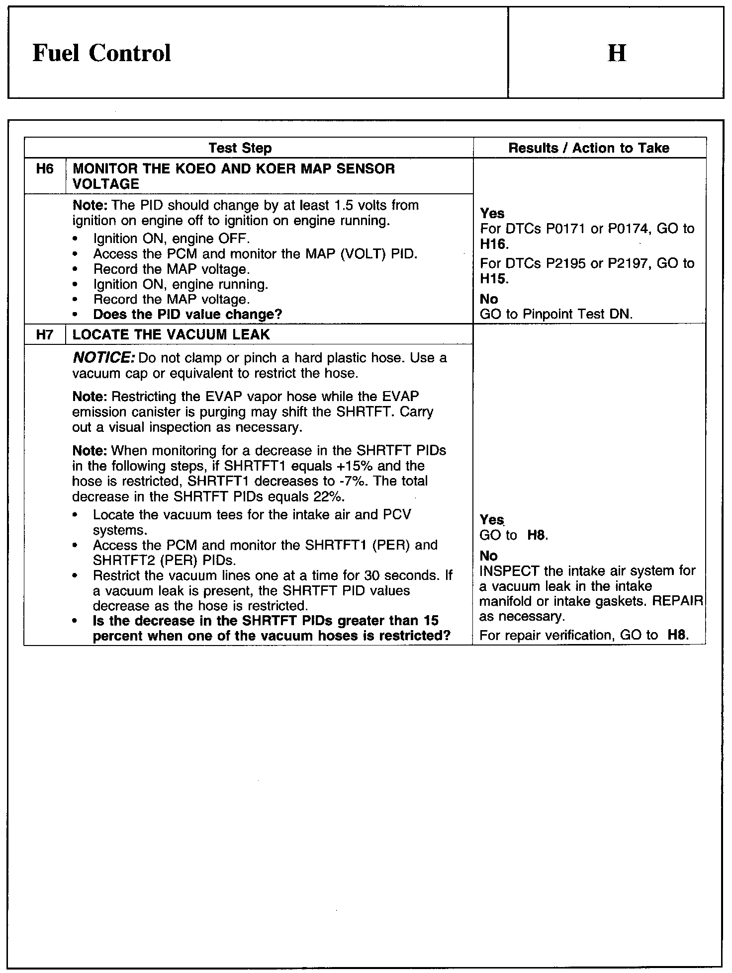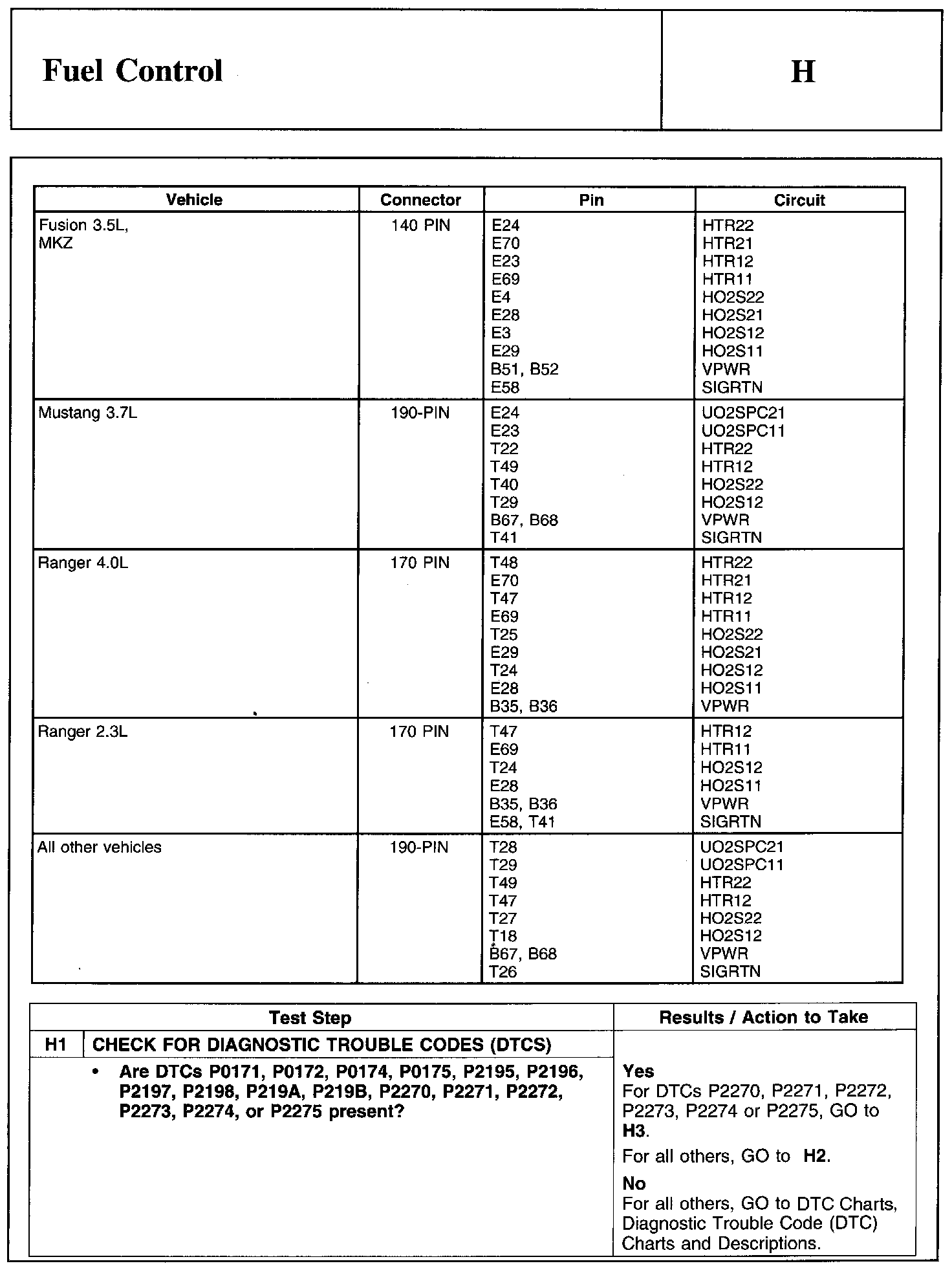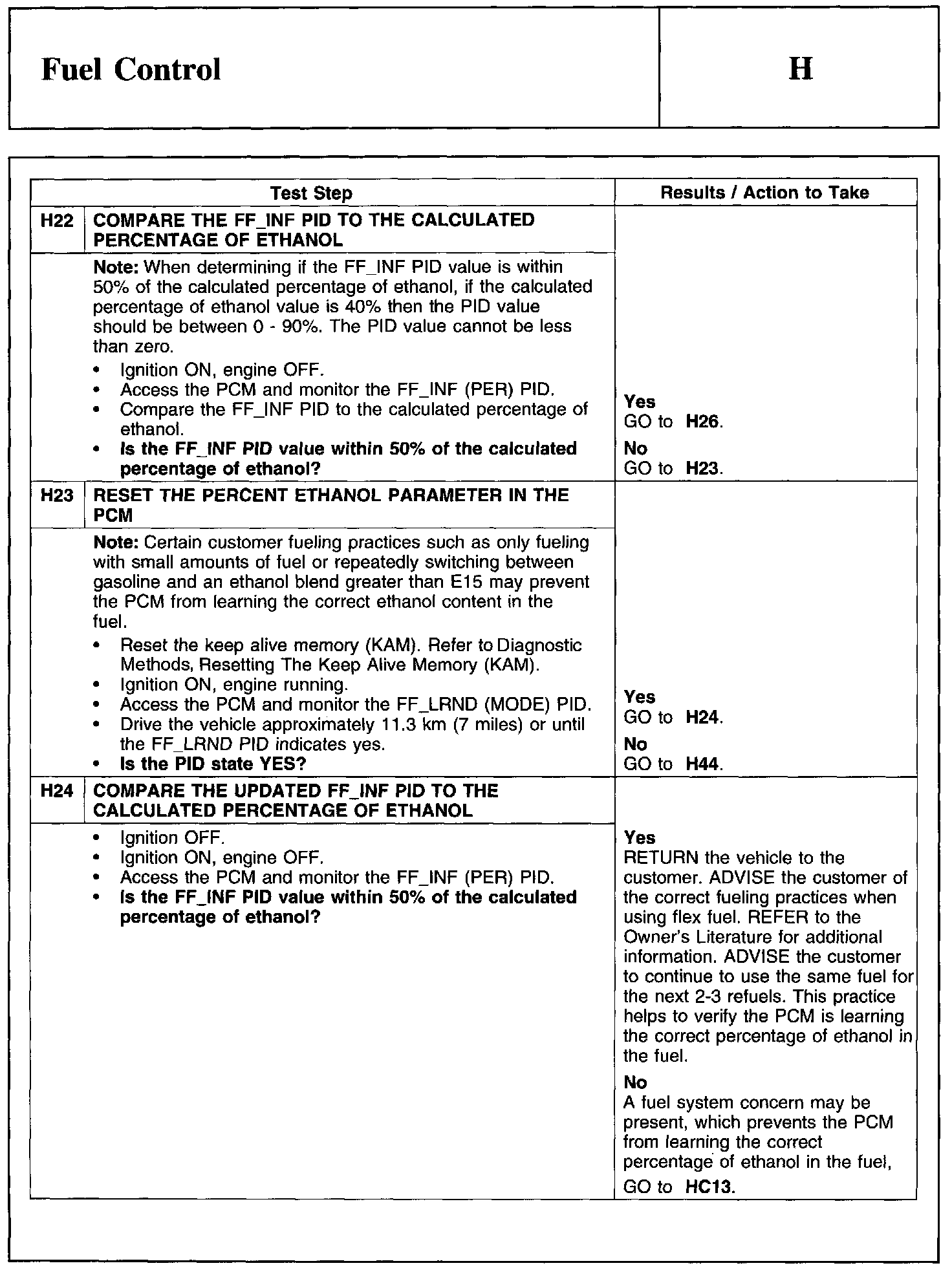 Home >> Ford >> 2011 >> Fusion FWD L4-2.5L >> Repair and Diagnosis >> Powertrain Management >> Computers and Control Systems >> Testing and Inspection >> Pinpoint Tests >> Test H: Fuel Control