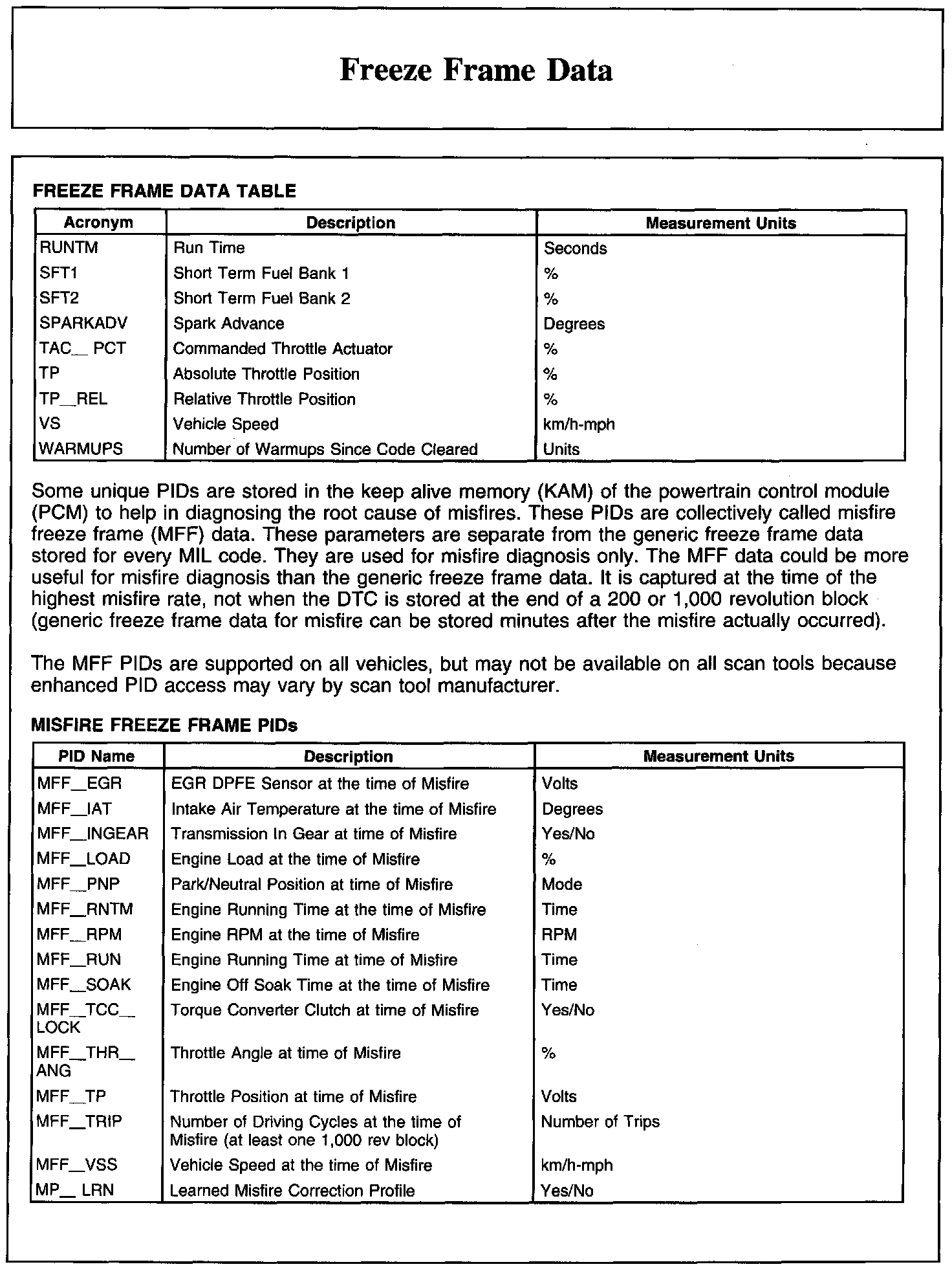 FREEZE FRAME DATA
