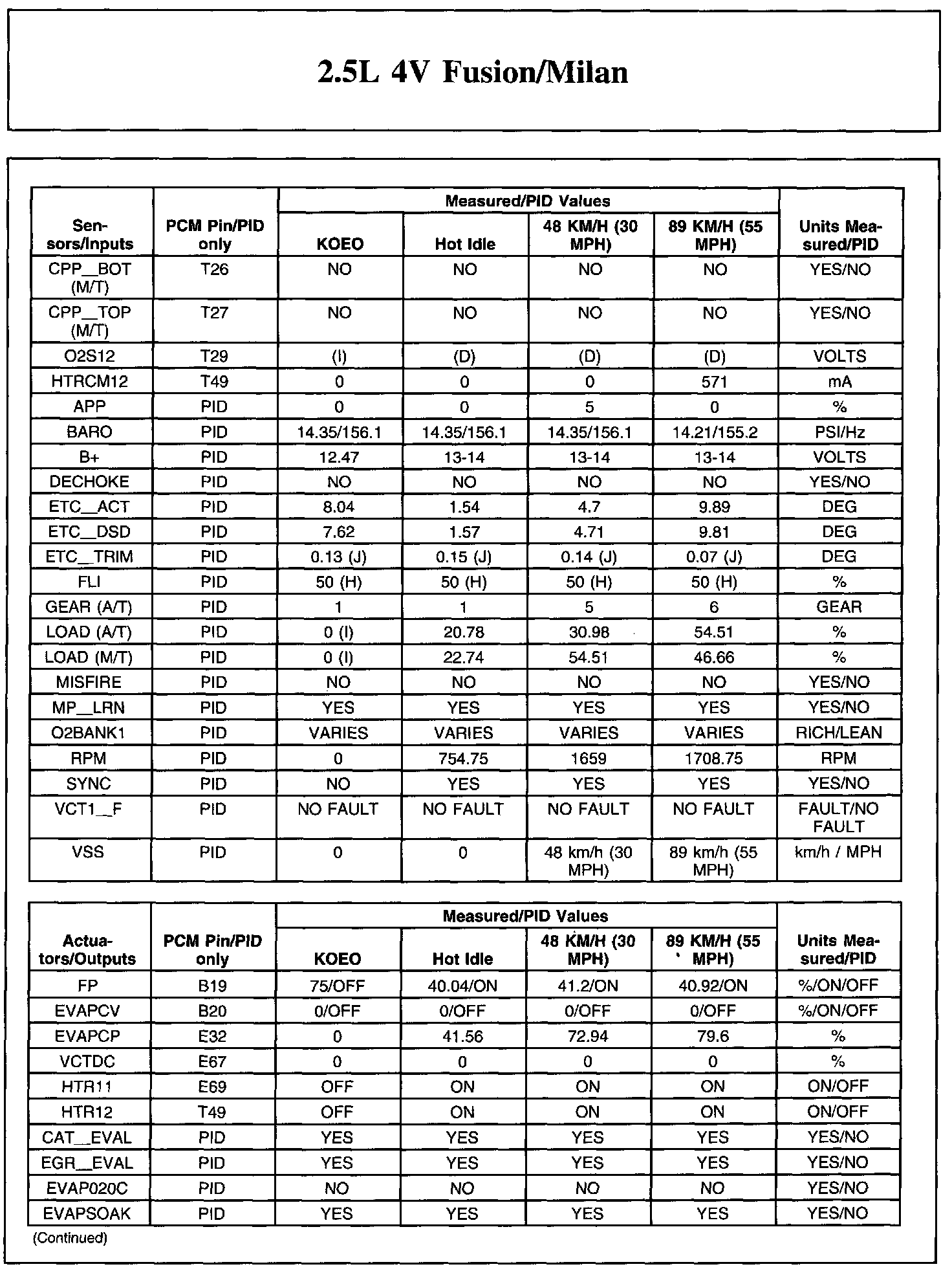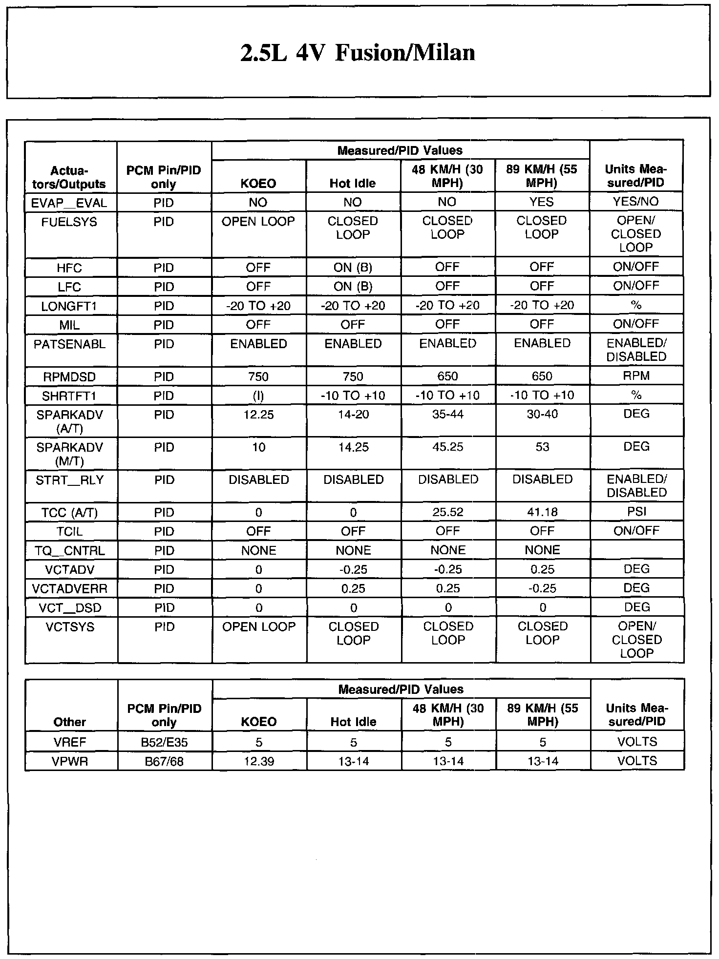 Home >> Ford >> 2011 >> Fusion FWD L4-2.5L >> Repair and Diagnosis >> Powertrain Management >> Computers and Control Systems >> Testing and Inspection >> Scan Tool Testing and Procedures >> Typical Diagnostic Reference Values