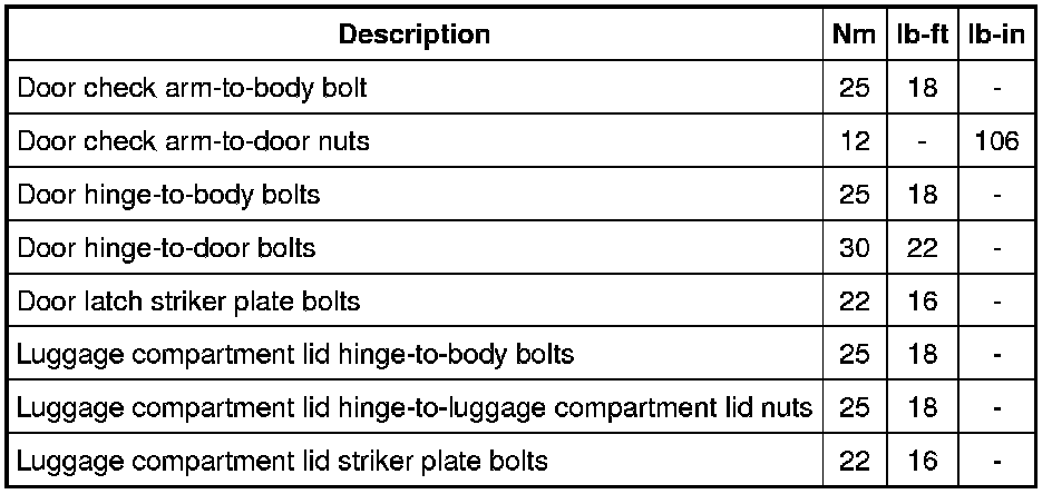 Torque Specifications