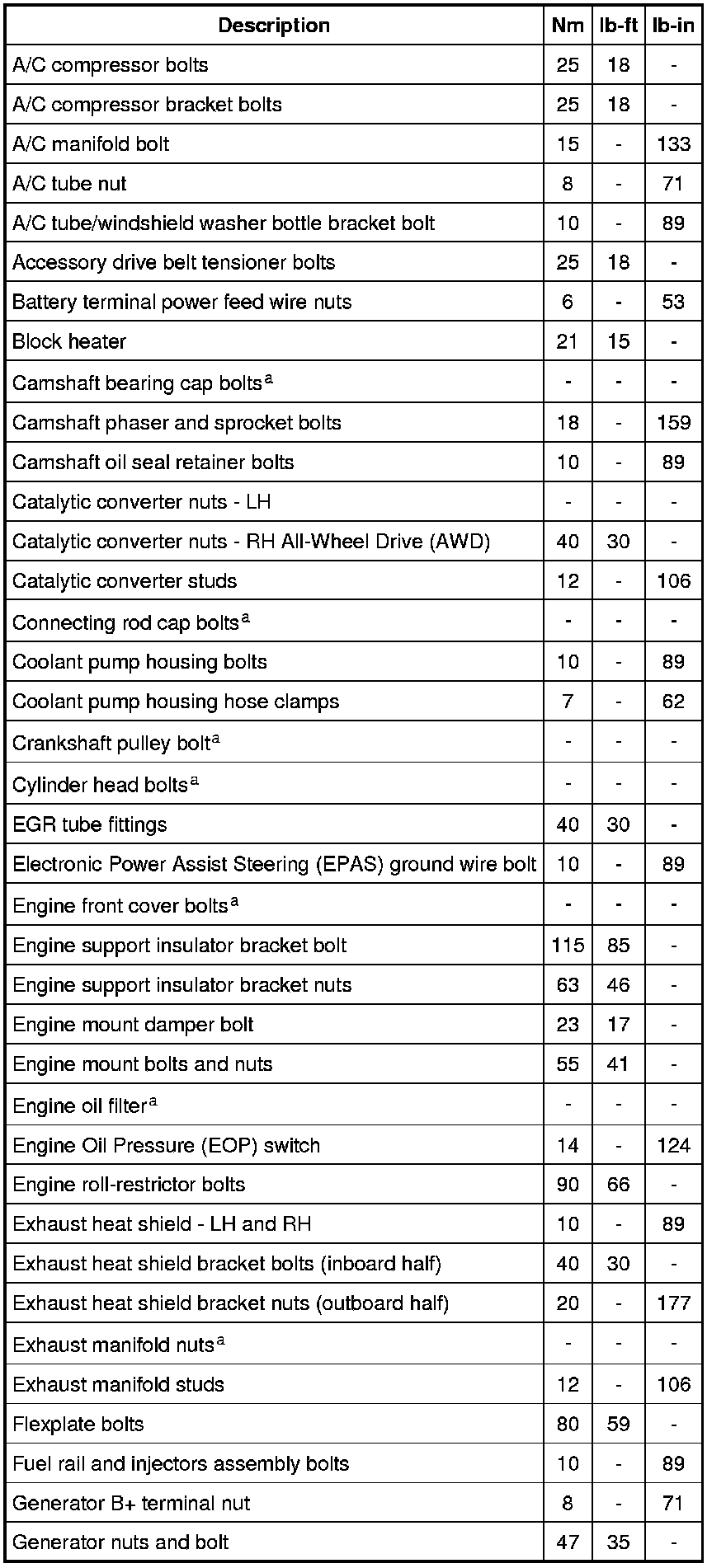 Torque Specifications