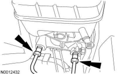 NOTICE: Do not spill brake fluid on painted or plastic surfaces or damage to the surface may occur. If brake fluid is spilled onto a painted or plastic surface, immediately wash the surface with water.
