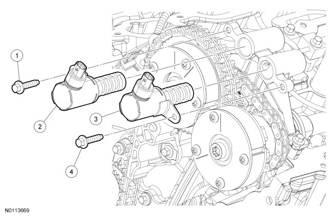 NOTE: The valve cover must be removed to access the VCT oil control solenoid. For additional information, refer to Engine - 3.7L Service and Repair.
