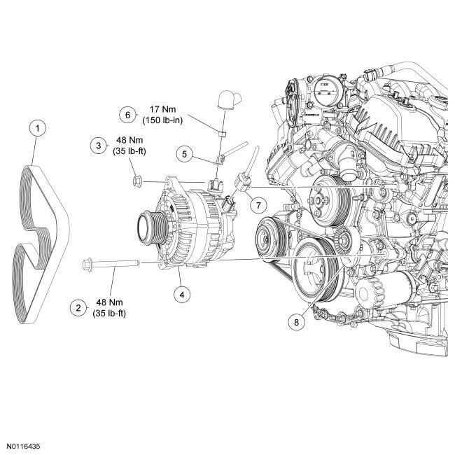 2. Rotate the Front End Accessory Drive (FEAD) belt tensioner counterclockwise and position the FEAD belt aside.