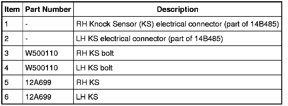 NOTE: The intake manifold must be removed to access the KS. For additional information, refer to Engine - 5.0L (4V) Service and Repair.