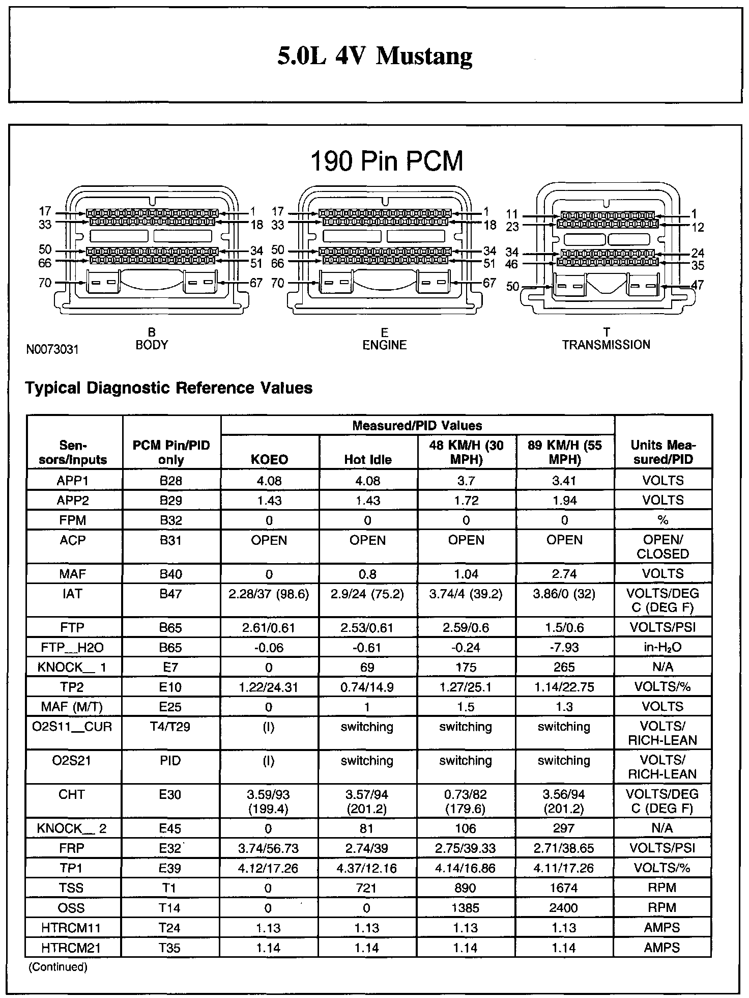 Home >> Ford >> 2011 >> Mustang V8-5.0L >> Repair and Diagnosis >> Powertrain Management >> Computers and Control Systems >> Testing and Inspection >> Scan Tool Testing and Procedures >> Typical Diagnostic Reference Values