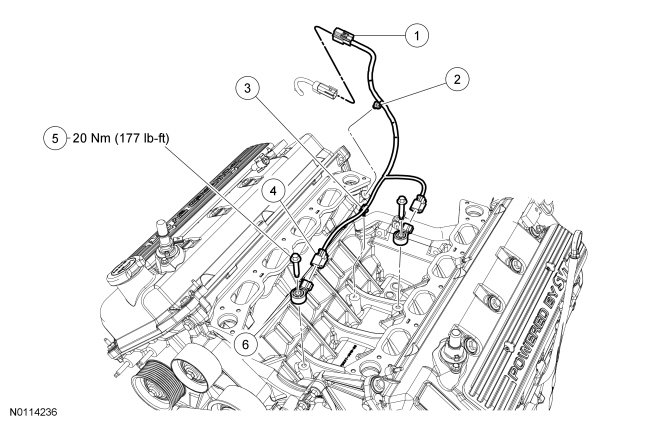 NOTICE: Note the position and orientation of each Knock Sensor (KS). The sensors must be installed in the same position as removed or damage to the sensors may occur.