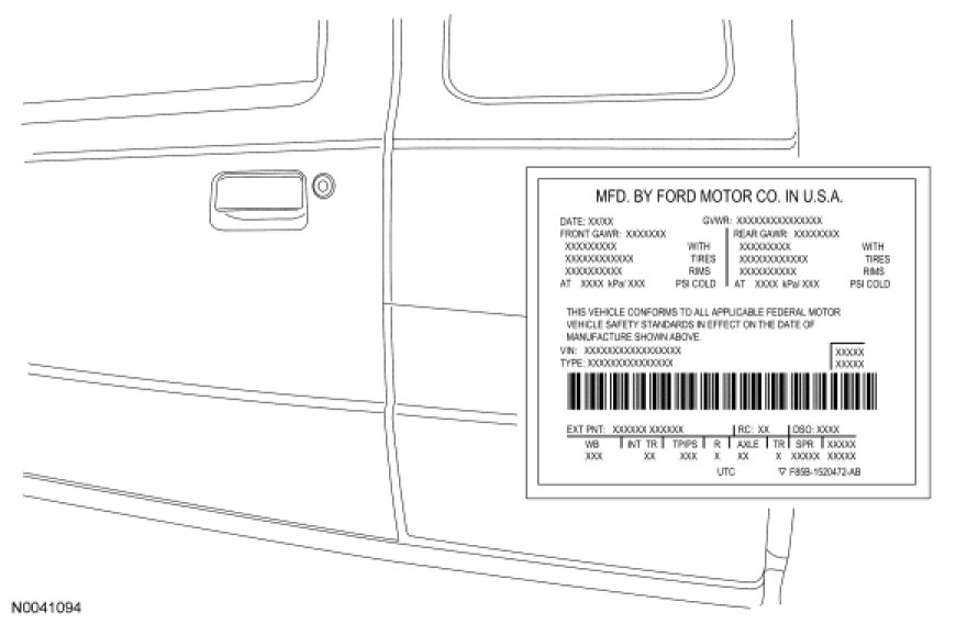 The upper portion of the Vehicle Certification (VC) label contains the manufacturer name, the month and year of manufacture, the certification statement and the Vehicle Identification Number (VIN). It also includes Gross Vehicle Weight Rating (GVWR).