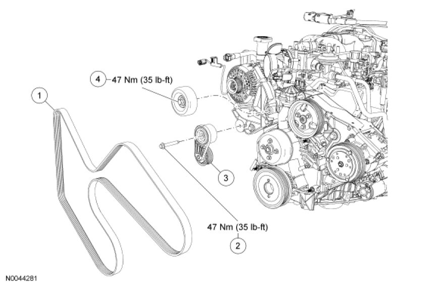 Front End Accessory Drive (FEAD) Exploded View - 4.0L without A/C