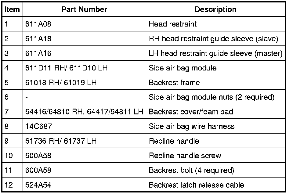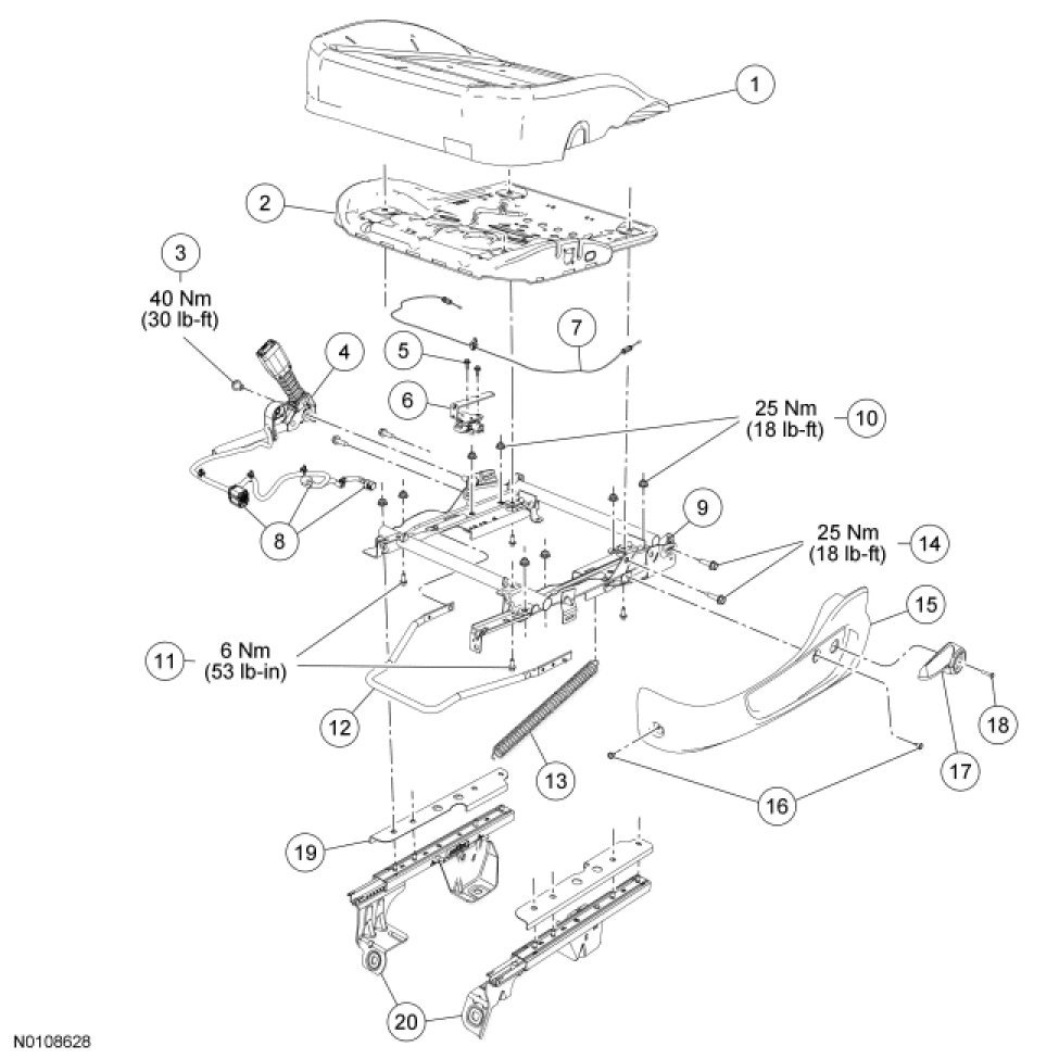 Seat - Exploded View, Front