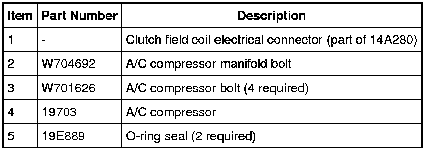 NOTE: A new A/C compressor may come equipped with an A/C clutch disc and hub, A/C compressor pulley and A/C clutch field coil already installed. If these components are not pre-installed, it will be necessary to transfer these parts from the old A/C compressor to the new compressor prior to installations of the A/C compressor if suitable for reuse.