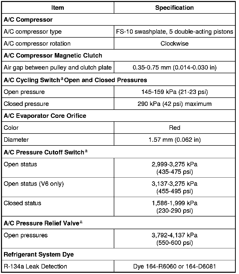 Home >> Ford >> 2011 >> Ranger 2WD L4-2.3L >> Repair and Diagnosis >> Specifications >> Mechanical Specifications >> Heating and Air Conditioning >> Climate Control System