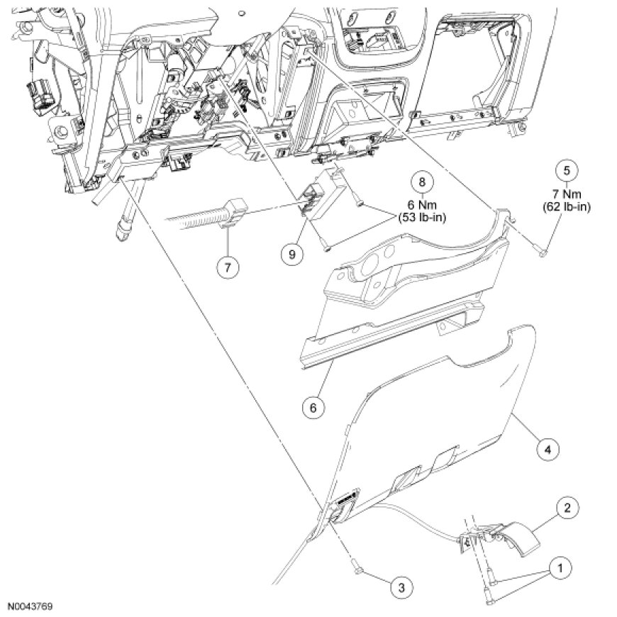 3. Remove the 5 steering column opening reinforcement bolts and the reinforcement.
