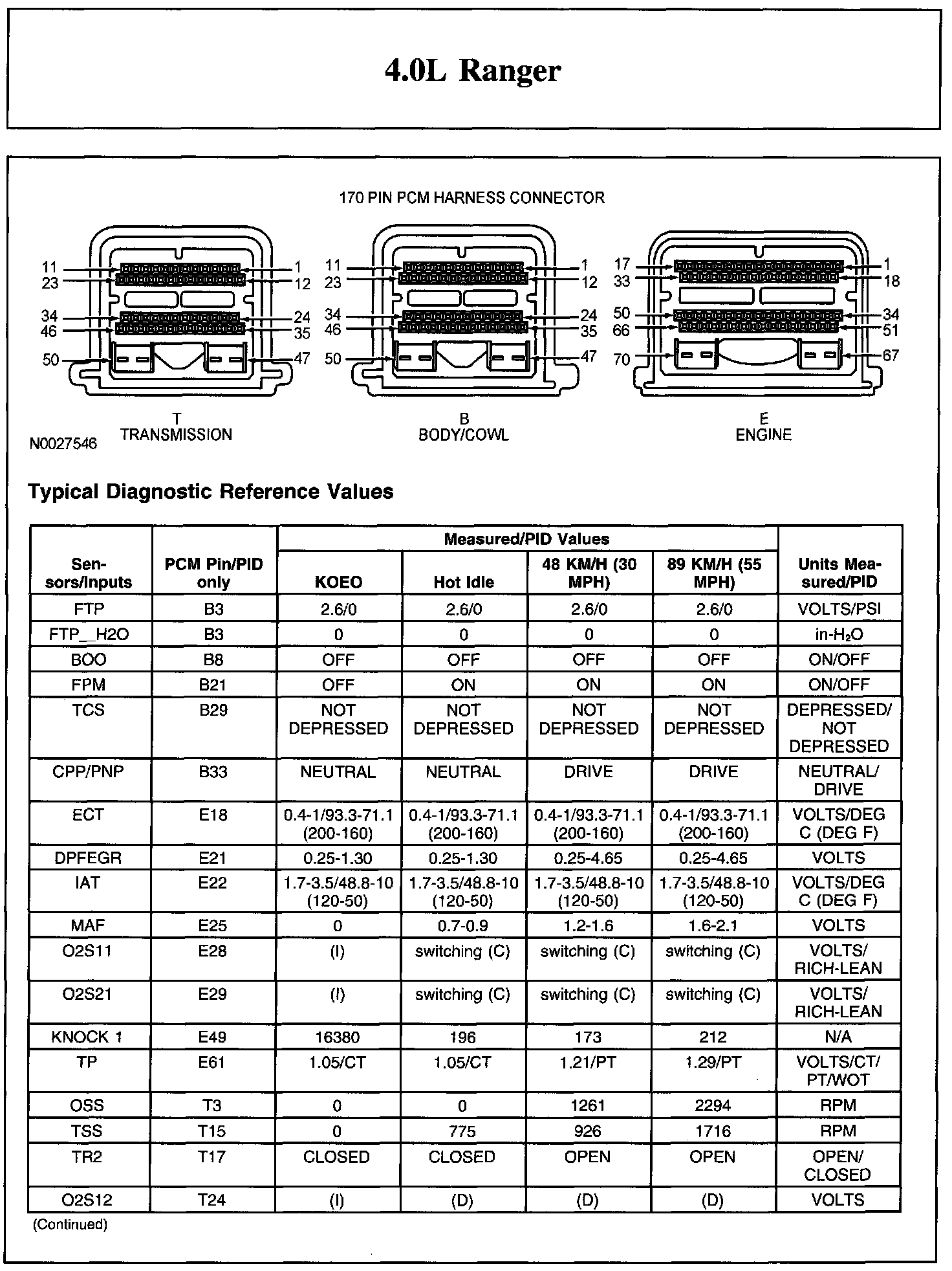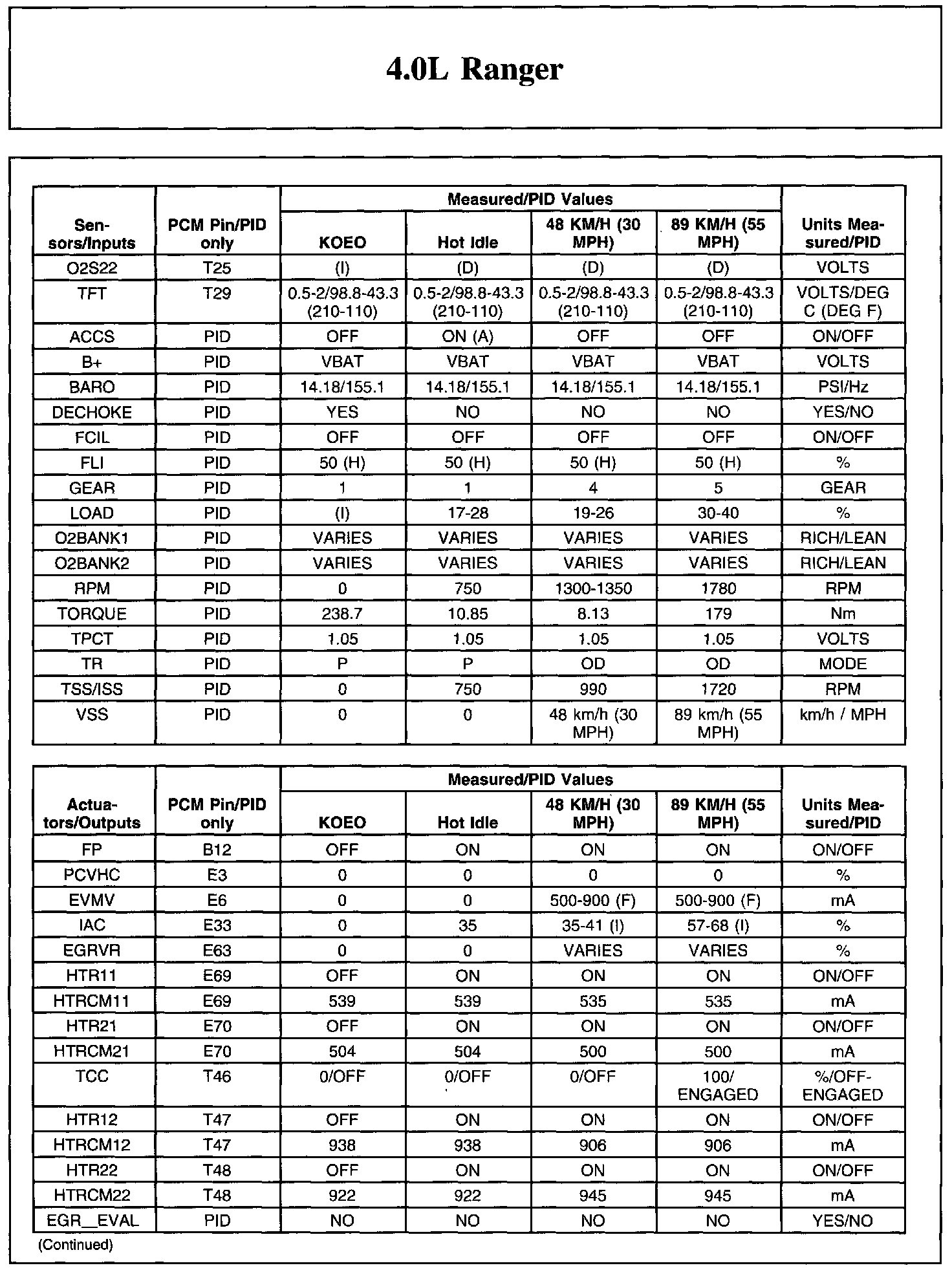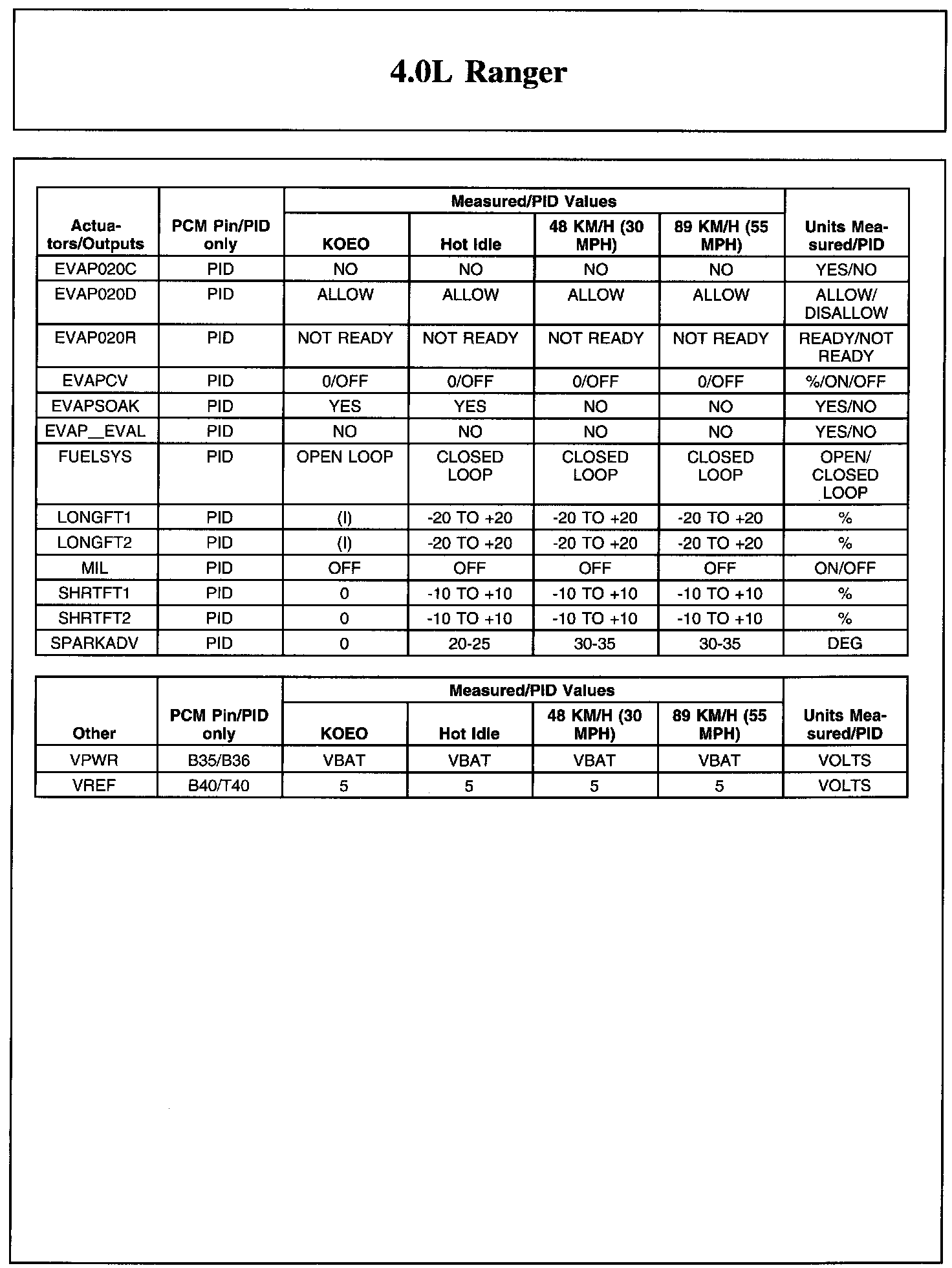 Home >> Ford >> 2011 >> Ranger 2WD V6-4.0L >> Repair and Diagnosis >> Powertrain Management >> Computers and Control Systems >> Testing and Inspection >> Scan Tool Testing and Procedures >> Typical Diagnostic Reference Values