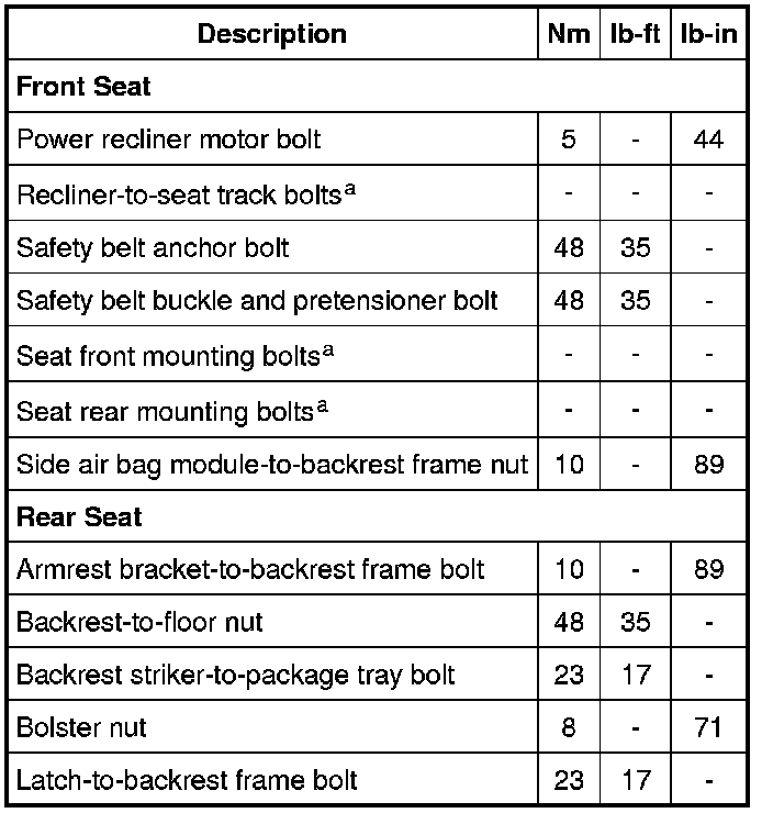 Seats: Specifications