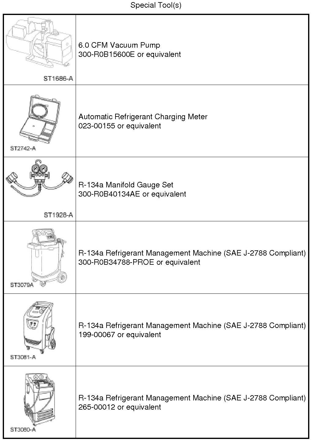 NOTE: Ford Motor Company recommends the use of R-134a refrigerant management equipment that meets the requirements of the SAE J2788 standard.