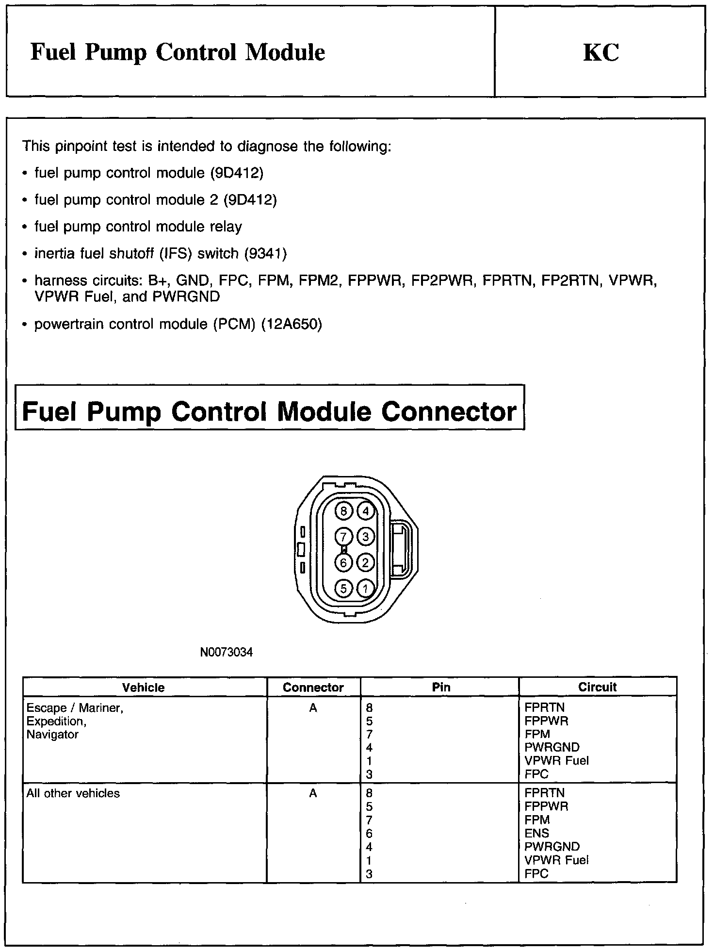 PINPOINT TEST KC: FUEL PUMP CONTROL MODULE