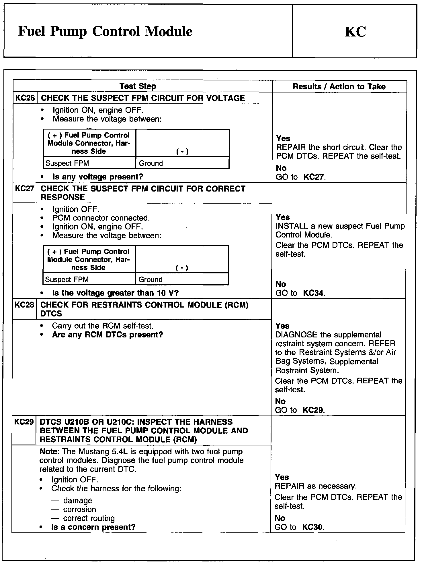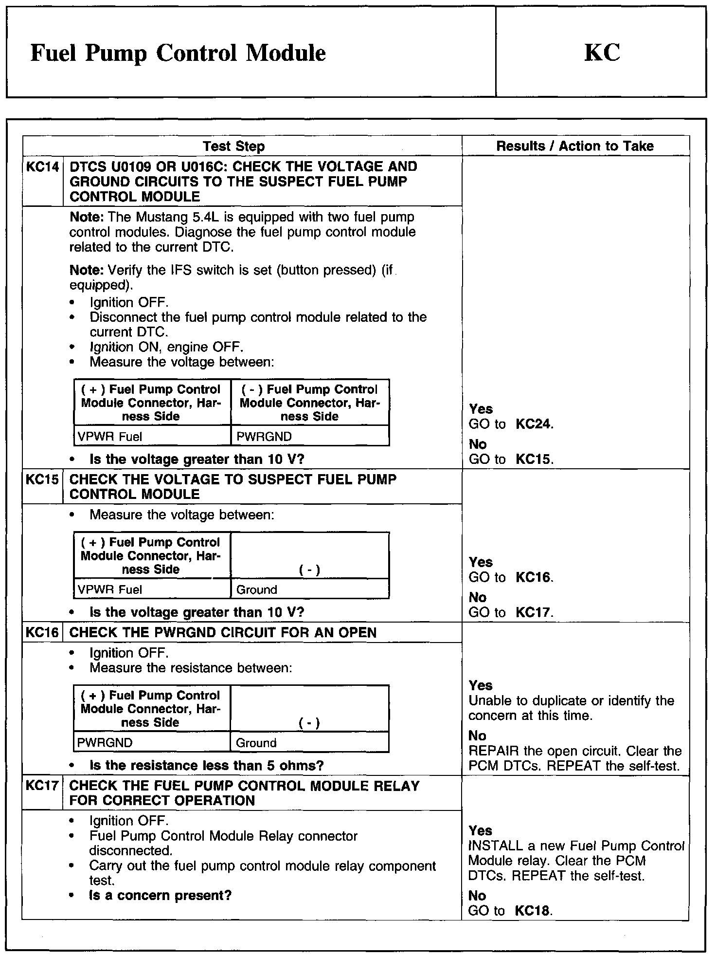 Test KC: Fuel Pump Control Module