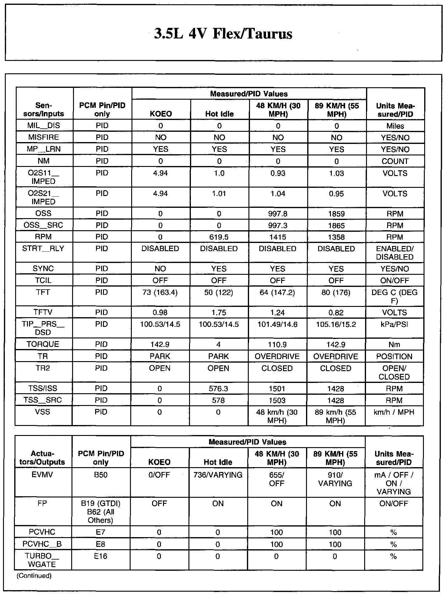 Home >> Ford >> 2011 >> Taurus FWD V6-3.5L >> Repair and Diagnosis >> Powertrain Management >> Computers and Control Systems >> Testing and Inspection >> Scan Tool Testing and Procedures >> Typical Diagnostic Reference Values