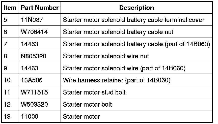 WARNING: Always disconnect the battery ground cable at the battery before disconnecting the starter motor battery terminal lead. If a tool is shorted at the starter motor battery terminal, the tool can quickly heat enough to cause a skin burn. Failure to follow this instruction may result in serious personal injury.