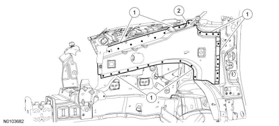 1. WARNING: Frame rail crush zones absorb crash energy during a collision and must be replaced if damaged. Straighten damaged frame rails to correct frame dimensions prior to frame member sectioning. Failure to follow these instructions may adversely affect frame rail performance and may result in serious personal injury to vehicle occupant(s).