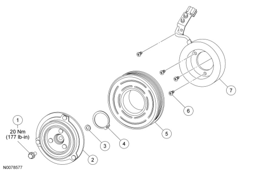 - Inspect for excessive wear, including grooving in the A/C clutch disc and hub or A/C compressor pulley that is more than fingernail depth.