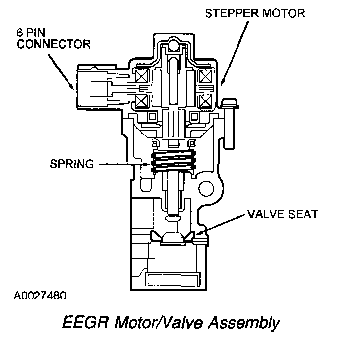 Depending on the application, the EEGR valve is either a water cooled or an air cooled motor/valve assembly. The motor is commanded to move in 52 discrete steps as it acts directly on the EEGR valve. The position of the valve determines the rate of EGR. The built-in spring works to close the valve against the motor opening force.