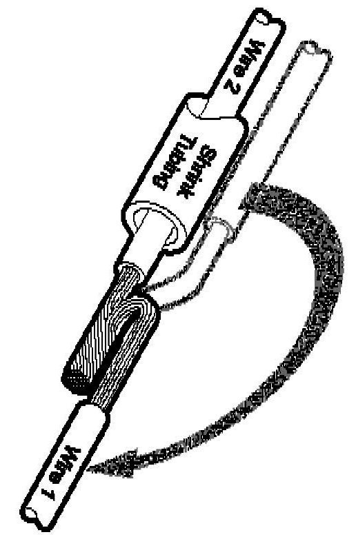 NOTE: Overlap tubing on both wires.