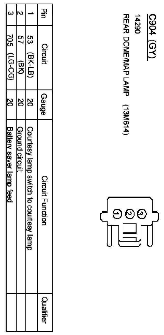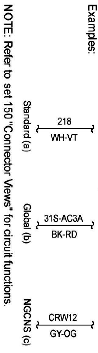 Connector Views show the views of the pins and/or cavities of all connectors. The pin and cavity sides are shown separately as if the connector were disconnected. The color of the connector housing is indicated next to the connector number when available. The harness causal number is located above the connector view and below the connector number. The circuit function charts are located below each connector. The wiring harness designations are listed in Component Location Charts.