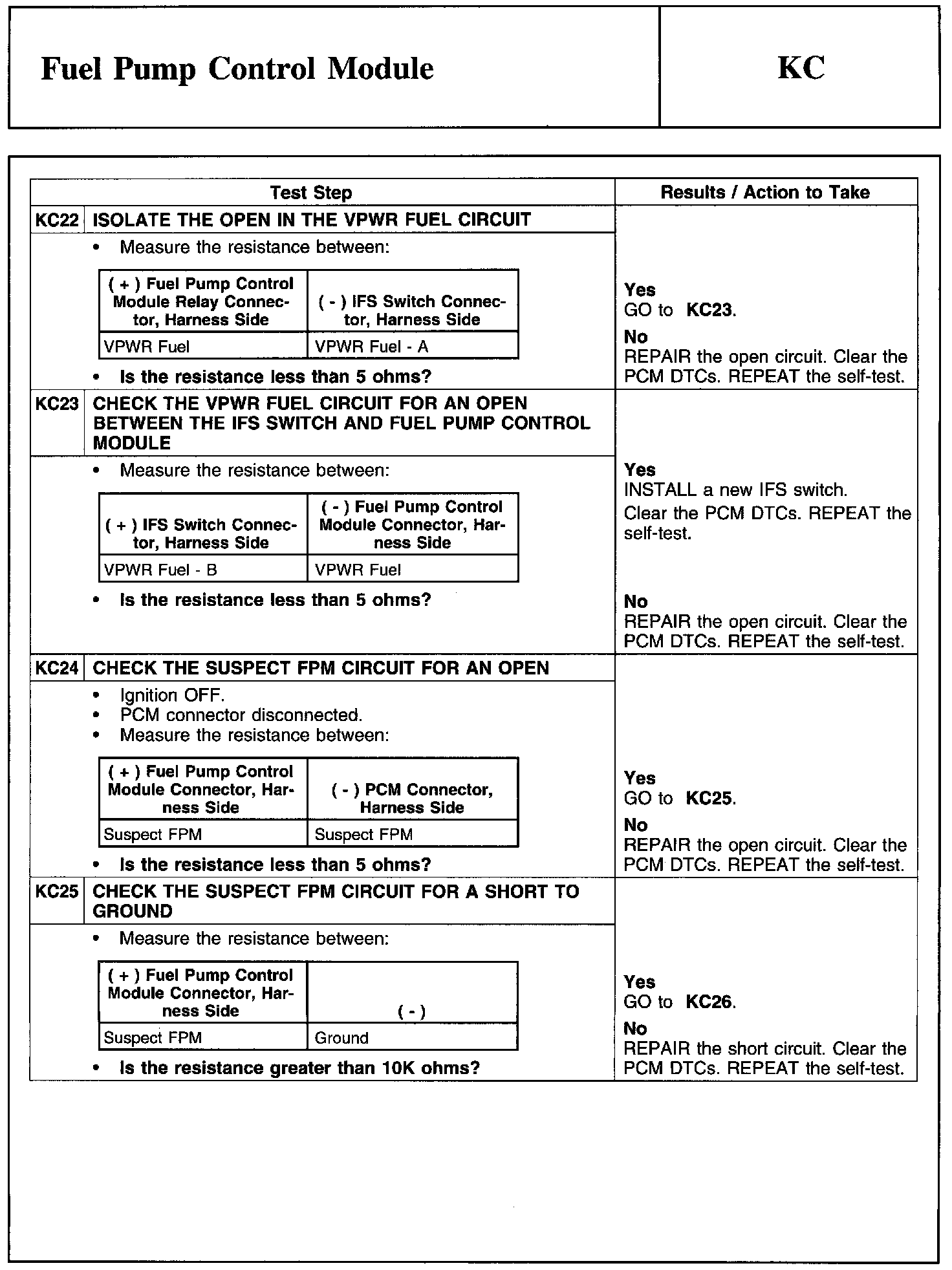 PINPOINT TEST KC: FUEL PUMP CONTROL MODULE